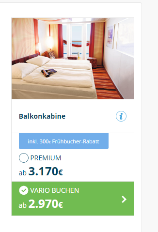 Was willst Du uns sagen? Das eine ist von Hannover das andere von Köln? Preise solltest Du ohne Flug vergleichen. Da ist Vario bei 2970 und Premium bei 3170. Beides für mich kein Preisverfall oder?