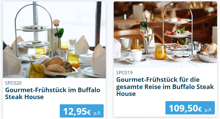 Wir planen für unsere Tour mit der Stella Ende Juni im Buffalo Steak House das Gourmet Frühstück zu buchen.