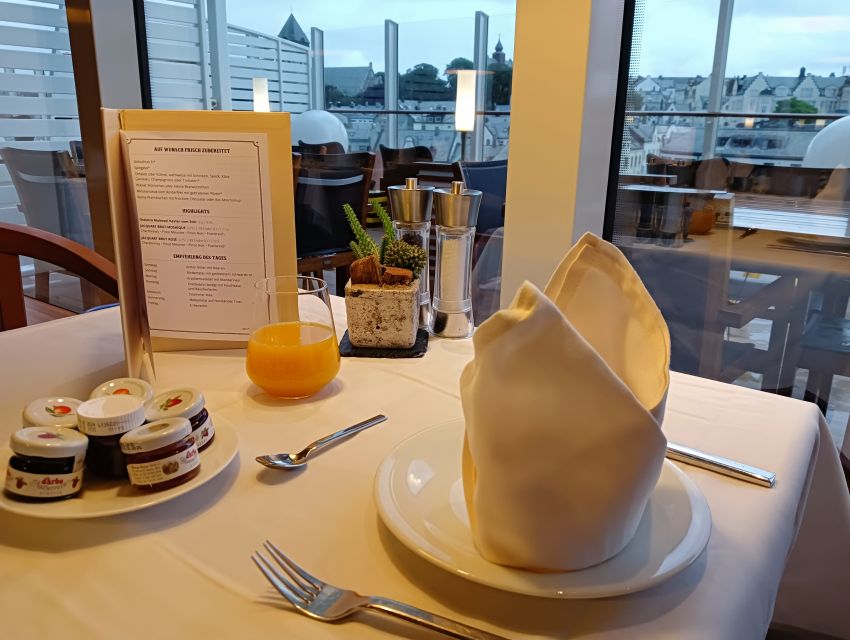 Auf meiner gerade zu Ende gegangenen Nova-Tour hatte ich mir für meinen Start in den Tag in meiner Lieblingsstadt Alesund ein Gourmet-Frühstück im "Churrascaria Steakhouse" für 12,95 € gegönnt. Das konnte ich ganz bequem übers Bordportal buchen, wäre auch bis zum Schluss der Reise möglich gewesen.