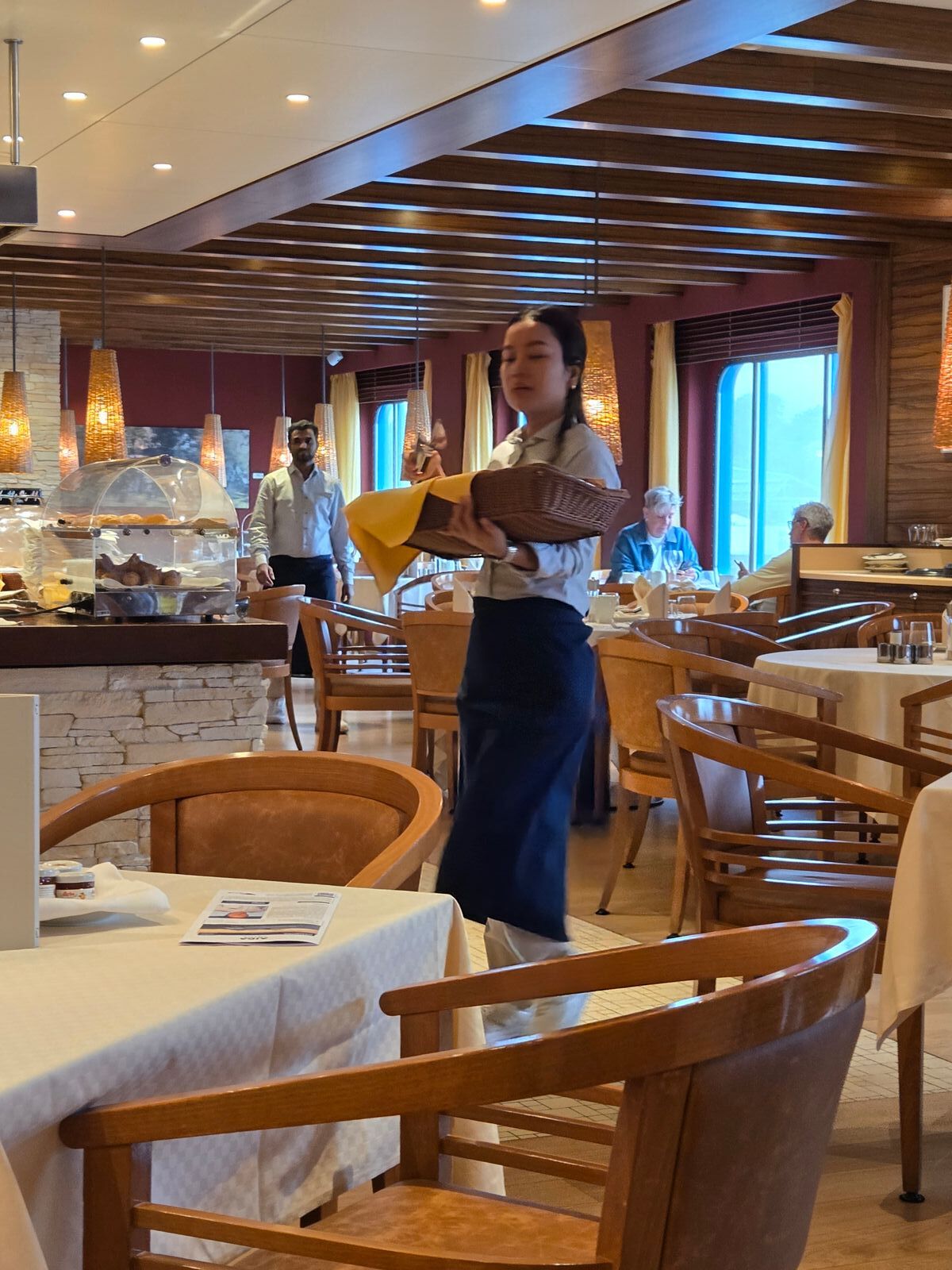Was passierte nach ein paar Tagen? Mit einem Kabinenbrief wurde ich zu einem Gespräch mit einem Offizier im Office Bereich gebeten. War weder der GM noch der F&B Offizier, hatte den noch nie gesehen. Er machte mir klar, das ich mit meiner Clubstufe nicht im Rossini frühstücken darf. Dass ich das nicht von mir aus getan hatte, sondern von der Restaurantleiterin ausging, hat er nicht zur Kenntnis genommen. Roboterhaft wiederholte er immer wieder, das ich dort nicht frühstücken darf. Ganz zum Schluss kam dann der Satz, ich dürfte bis zum Ende der Reise im Rossini bleiben.