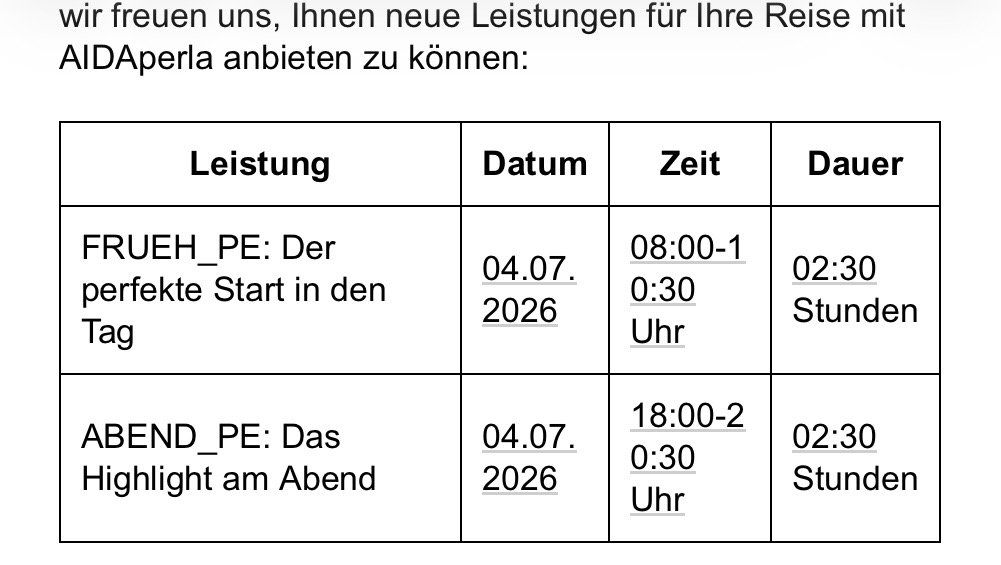 Ich hab da immer die meist zuverlässige „Benachrichtigung“ von den Foris genutzt, dachte die Benachrichtigungsfunktion unter myAIDA gibts nur für Ausflüge.