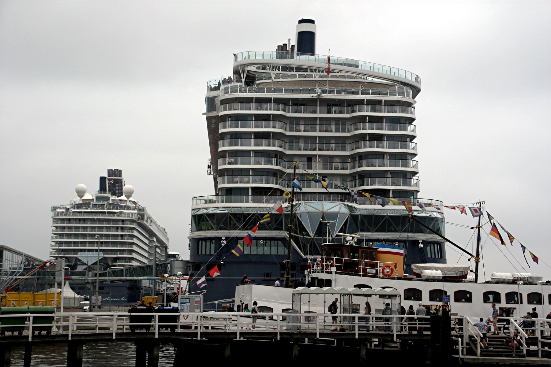 heute war die Mein Schiff 1 zu Gast in Kiel zusammen mit der Marina von Oceania Cruises. Die Mein Schiff 1 könnte mal neue Farbe vertragen..