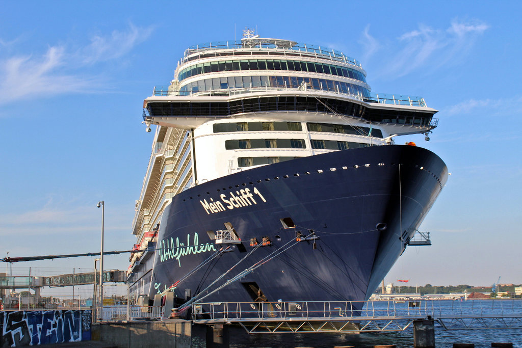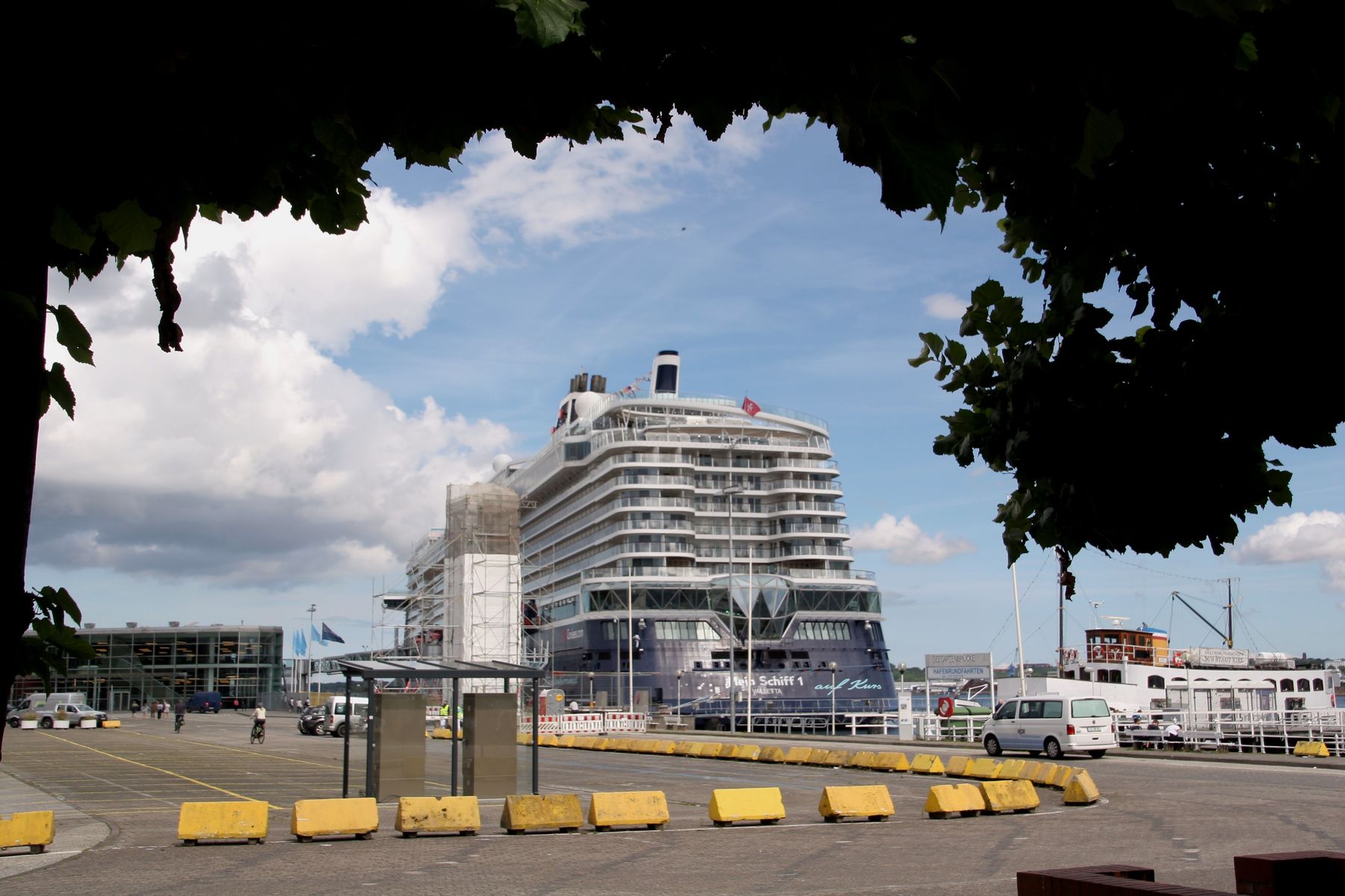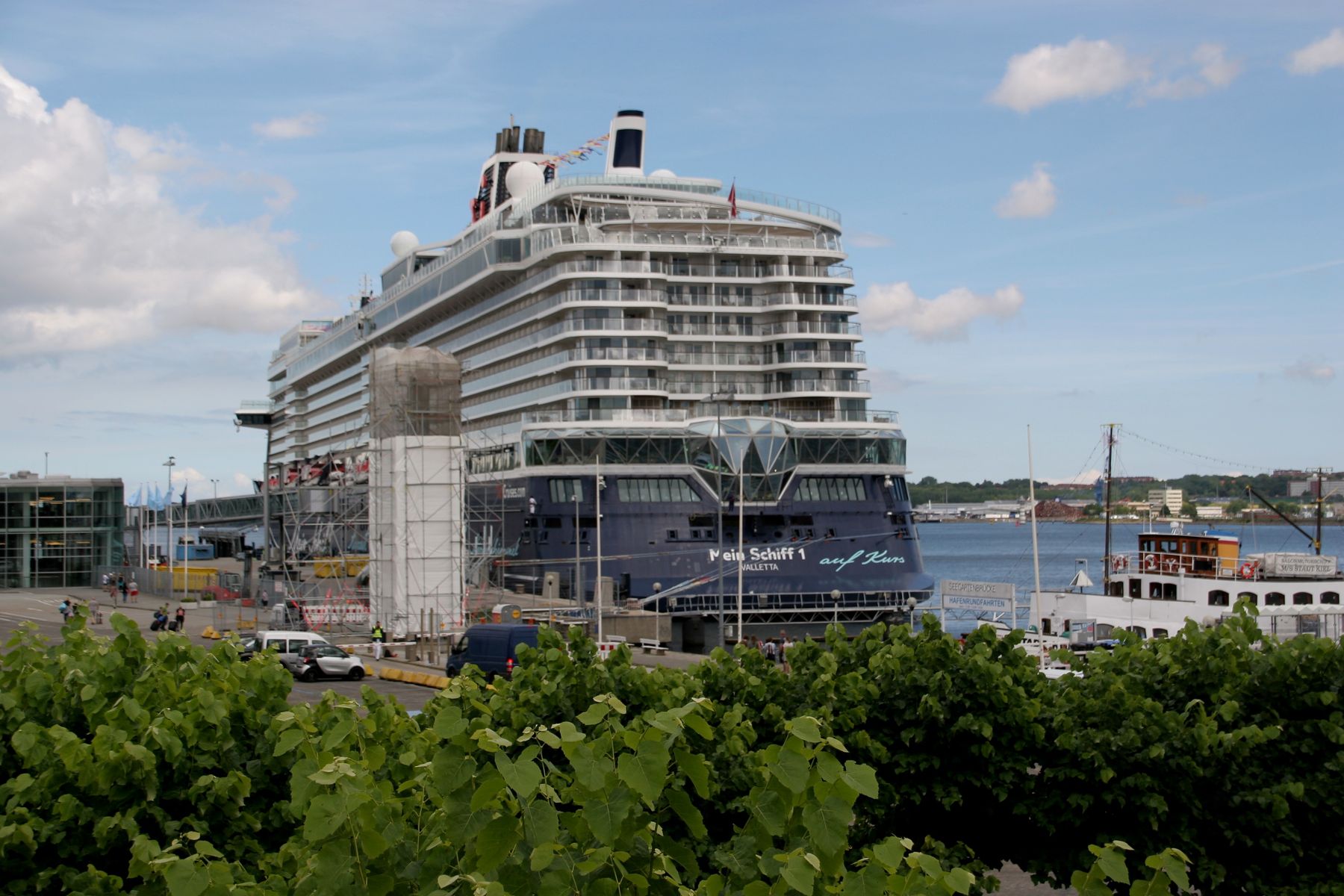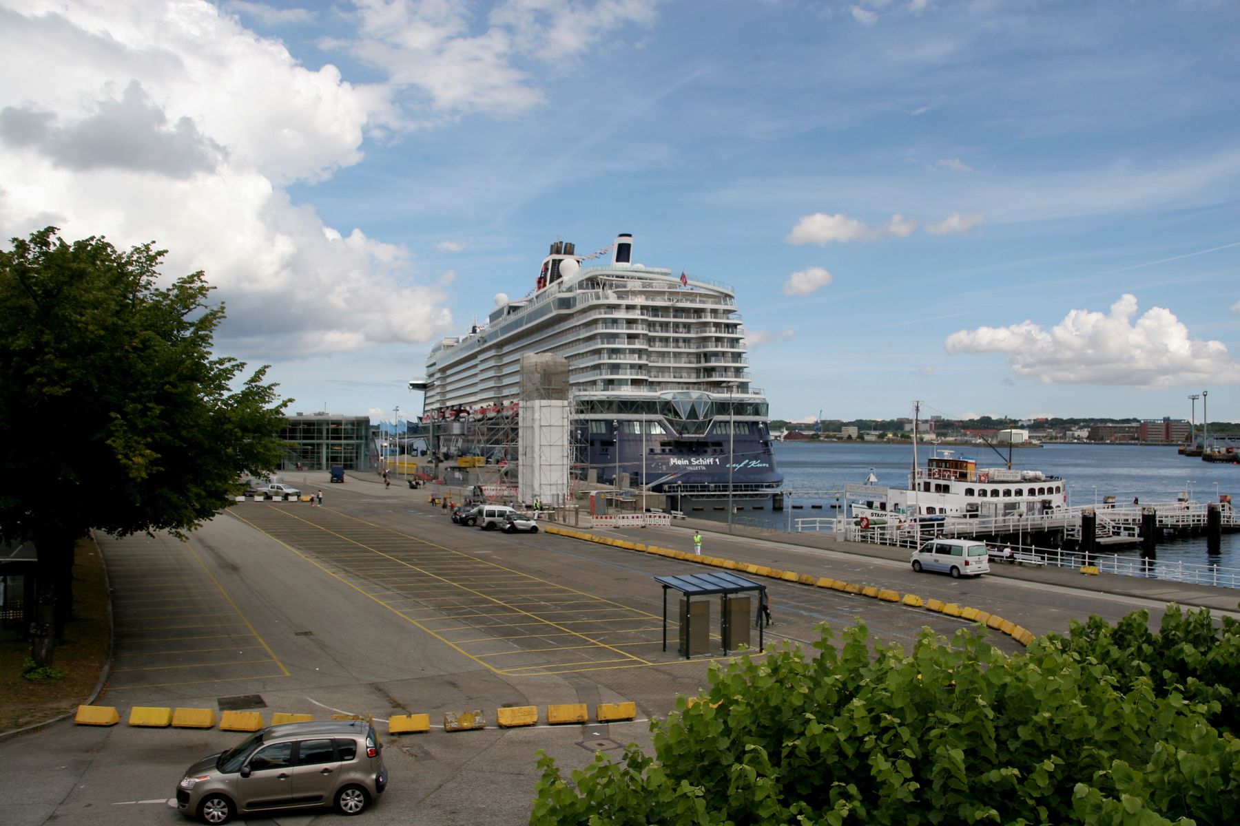 seltener Anblick, die Mein Schiff 1 liegt heute mal andersrum in Kiel.