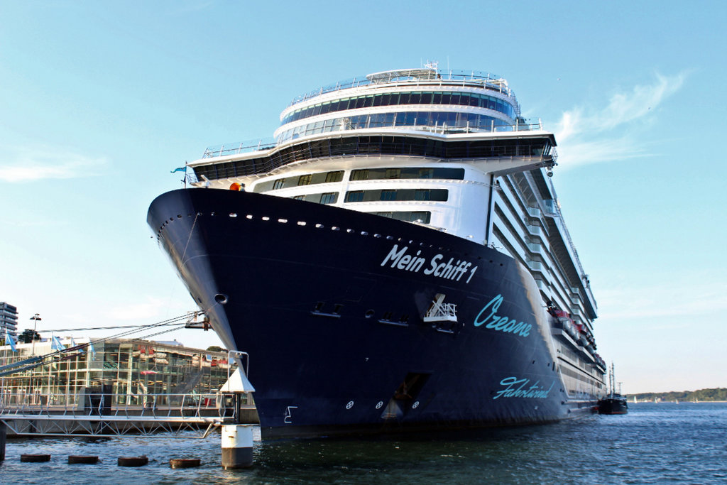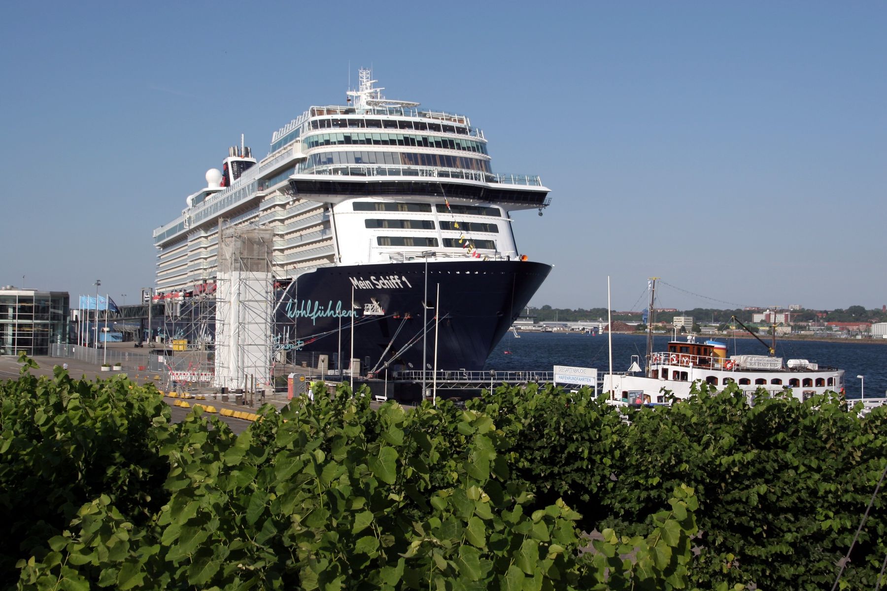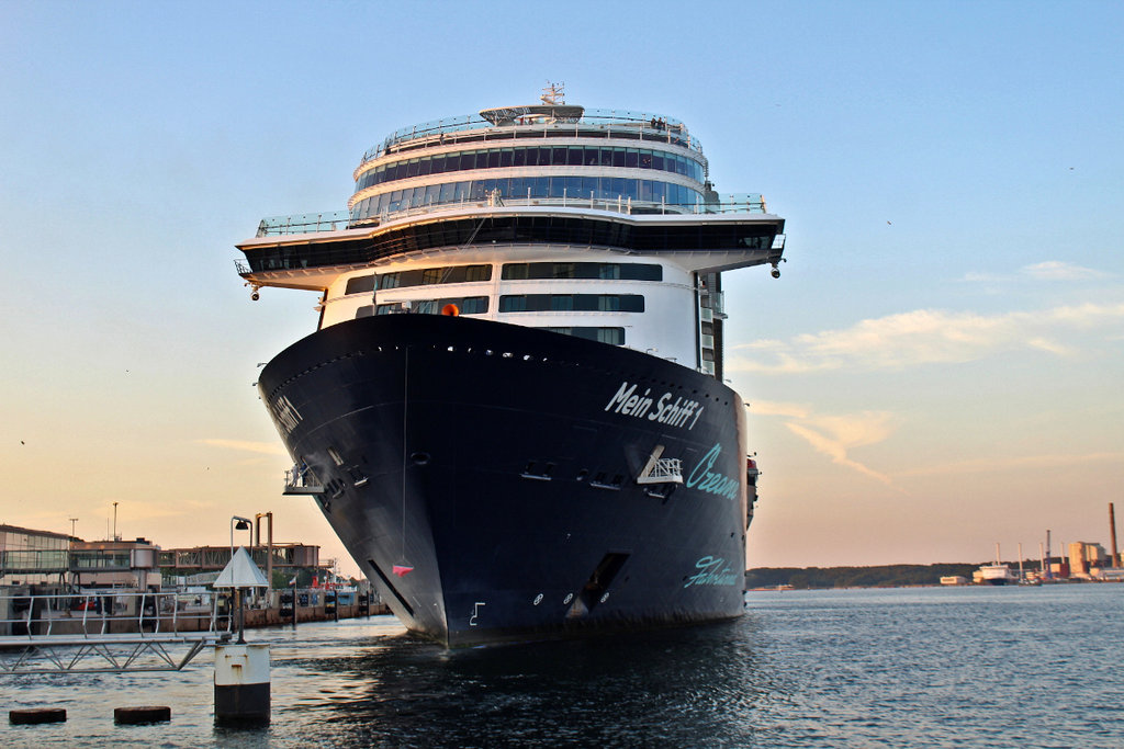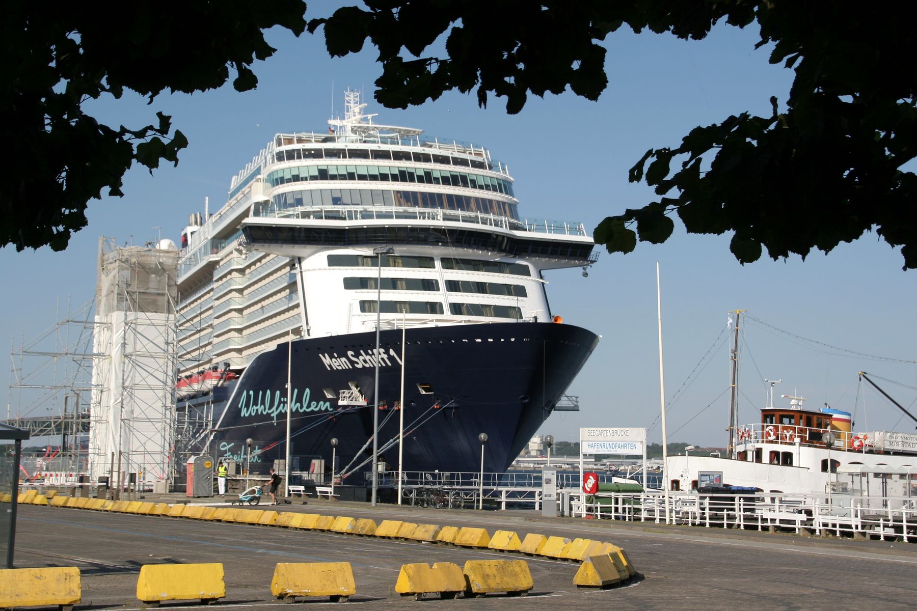 seltener Anblick, die Mein Schiff 1 liegt heute mal andersrum in Kiel.
