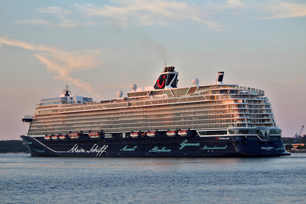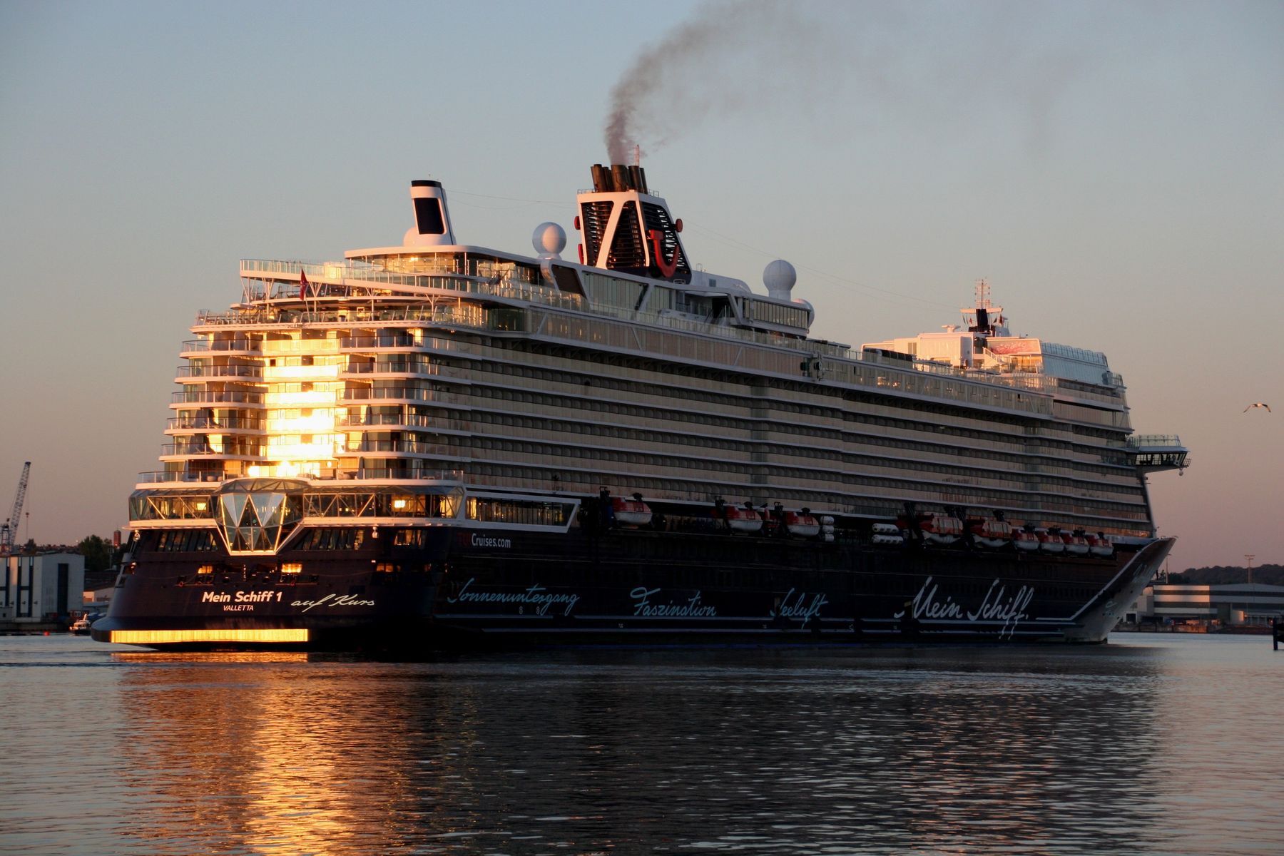 sind schöne Bilder vom Ablegemanöver der "Mein Schiff 1" in abendlicher Stimmung