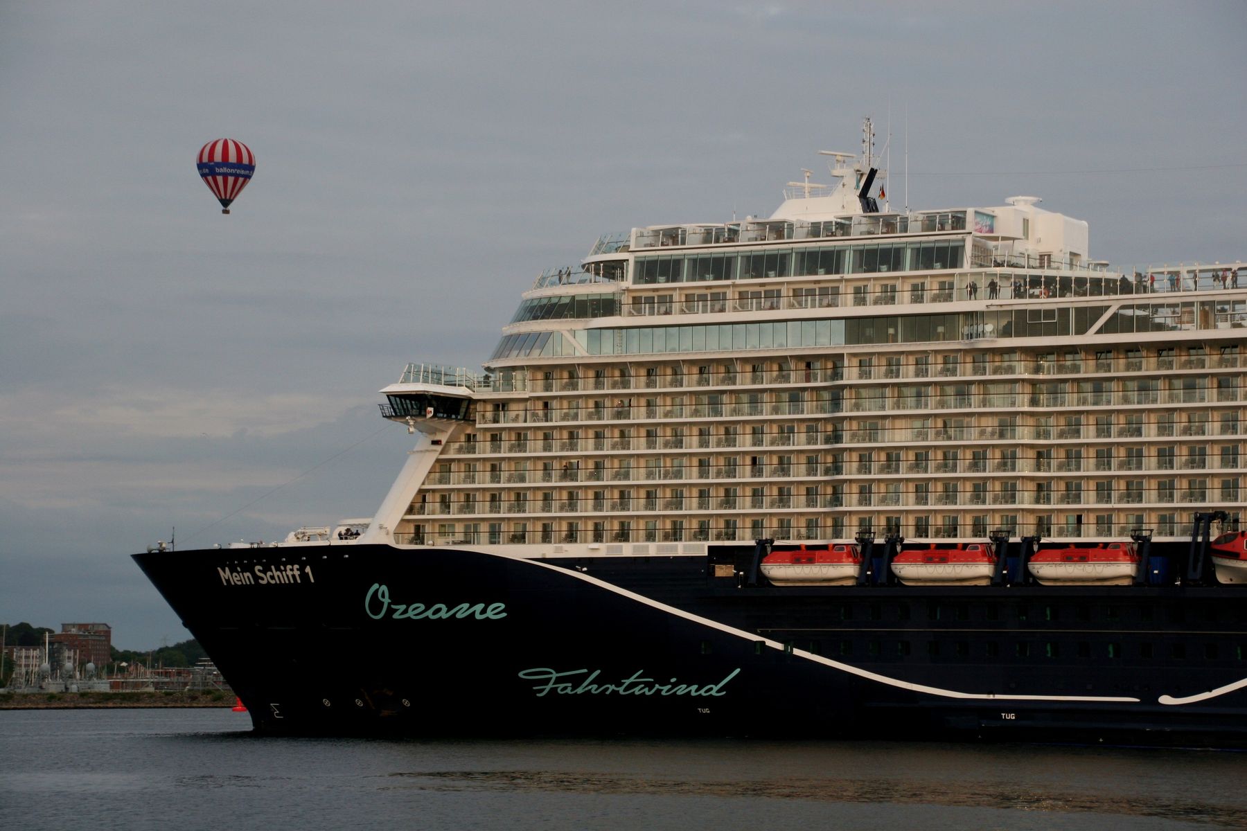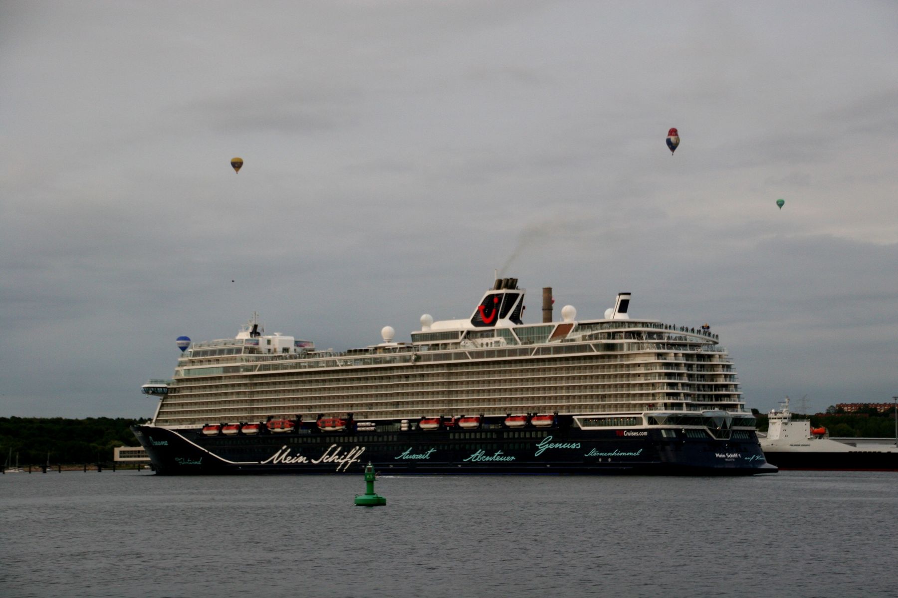Der Heißluftballon begleitet weiterhin die "Mein Schiff 1" während ihrer "Revierfahrt" auf der "Kieler Förde"
