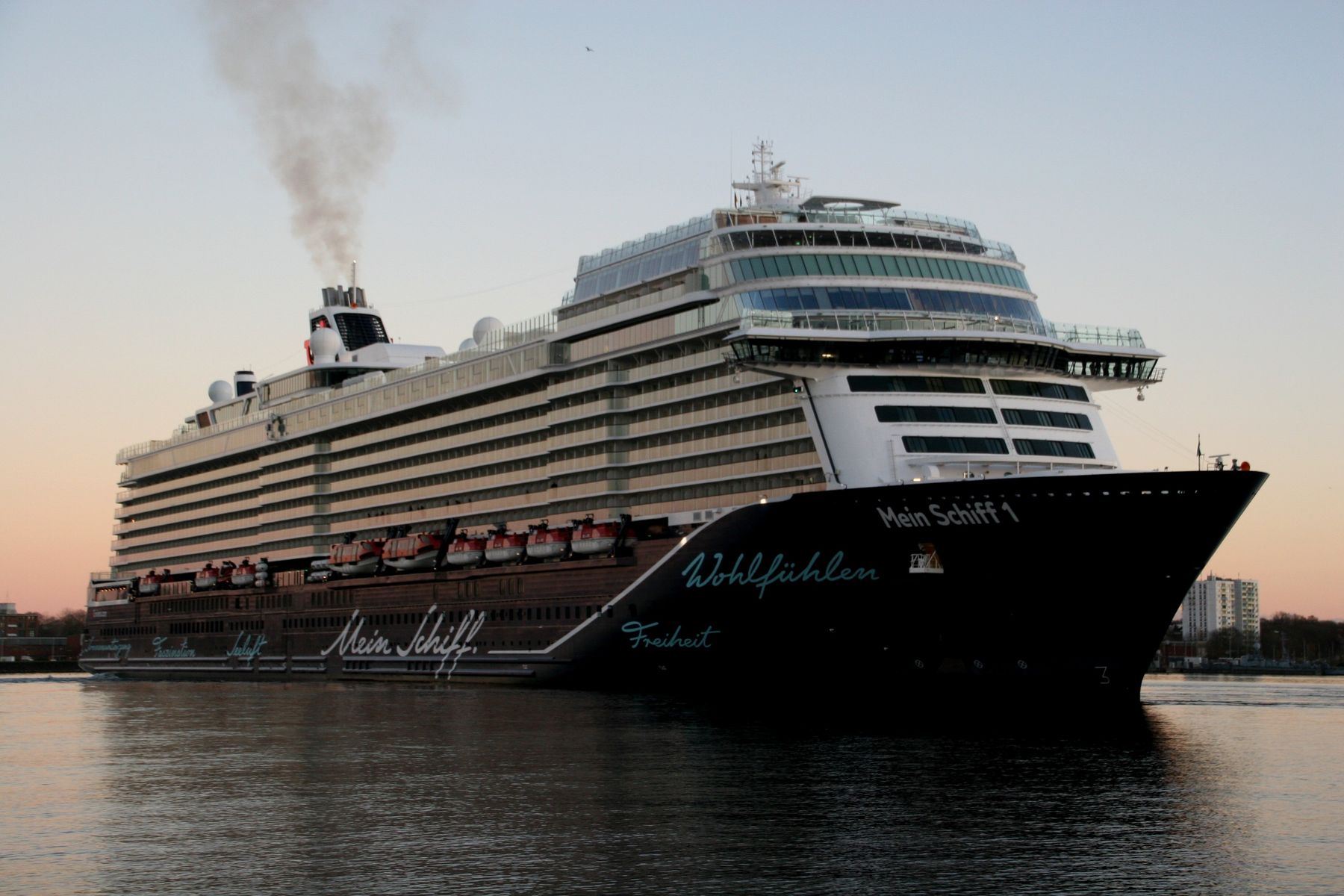 du hast die "Mein Schiff 1" noch im abendlichen Lichterglanz der untergehenden Sonne erwischt