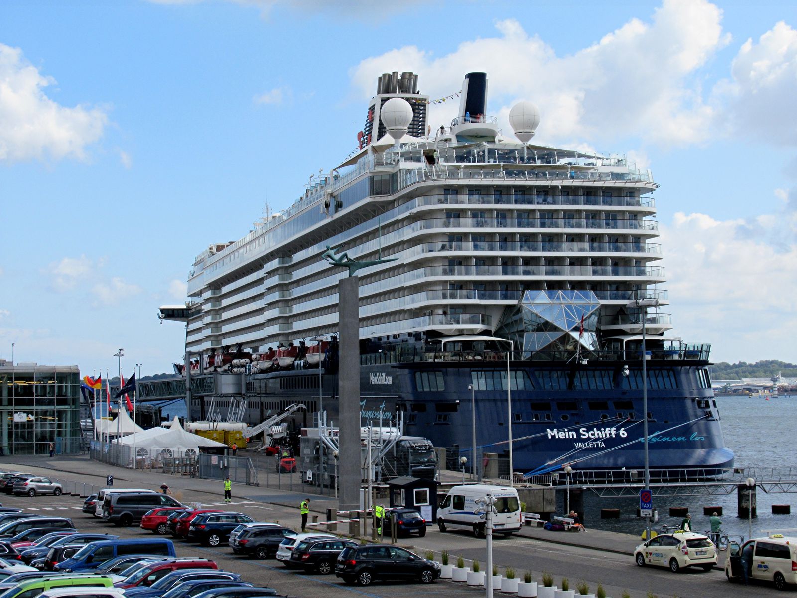 Ich bin auch schon sehr gespannt, welches "Wolkenpanorama" an einem hoffentlich "azurblauen" Himmel die "Sehleute" auf der "Mein Schiff 1" auf ihrer Revierfahrt durch die "Kieler Förde" zu sehen bekommen. An dem spektakulären "Stena"-Terminal fahren sie ja leider nicht vorbei. Dafür erfreuen sie sich über den Start in eine "Urlaubsreise". Wahrscheinlich wird der "Heizer" einen freundlichen Gruß an die Menschen an Land schicken. 😁