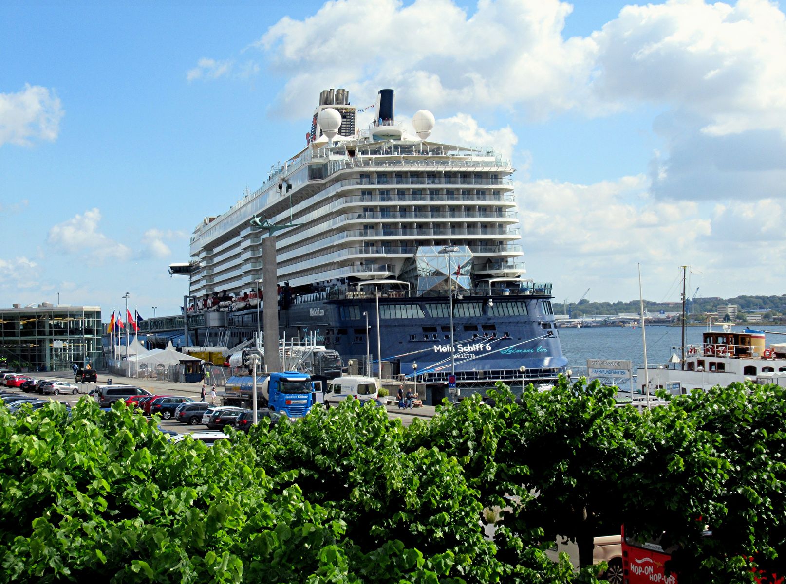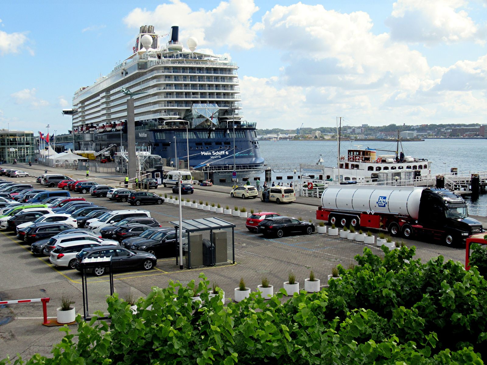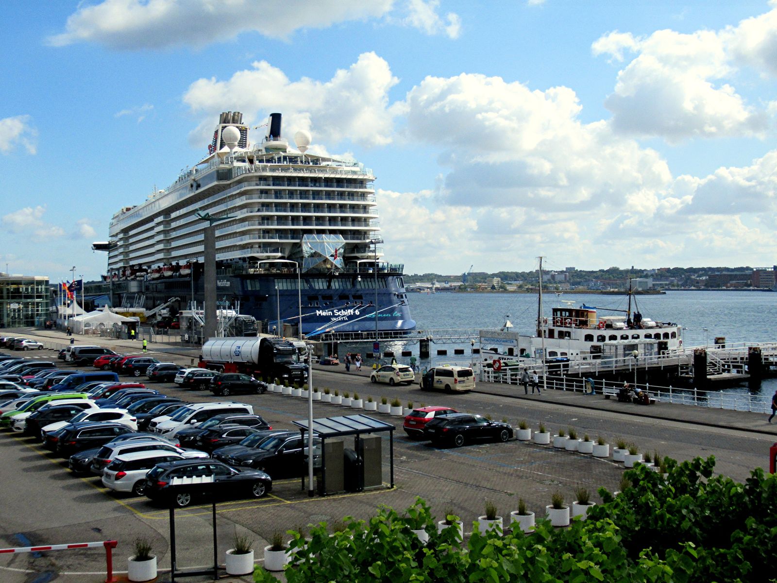 Ich bin auch schon sehr gespannt, welches "Wolkenpanorama" an einem hoffentlich "azurblauen" Himmel die "Sehleute" auf der "Mein Schiff 1" auf ihrer Revierfahrt durch die "Kieler Förde" zu sehen bekommen. An dem spektakulären "Stena"-Terminal fahren sie ja leider nicht vorbei. Dafür erfreuen sie sich über den Start in eine "Urlaubsreise". Wahrscheinlich wird der "Heizer" einen freundlichen Gruß an die Menschen an Land schicken. 😁