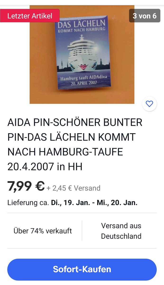 Bei der nächsten Kreuzfahrt kannst Du ja mal im Bordshop schauen. Ggf. sind die Sachen bis dahin nur mehr oder weniger verstaubt...![]()