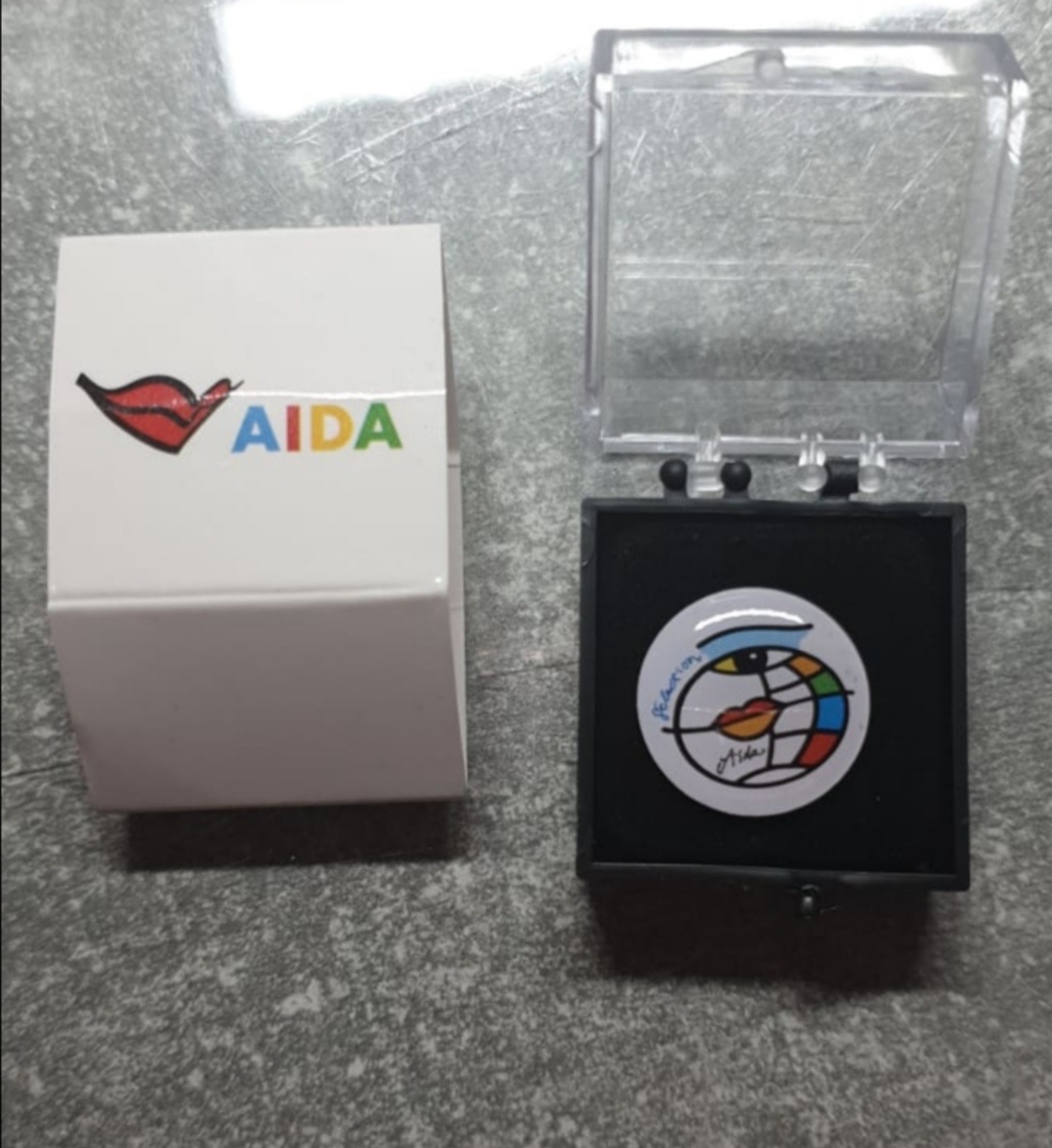 Mir fehlt für meine Sammlung noch ein eckiger Pin mit der Aufschrift „AIDA Das Clubschiff“, egal in welcher Farbe.