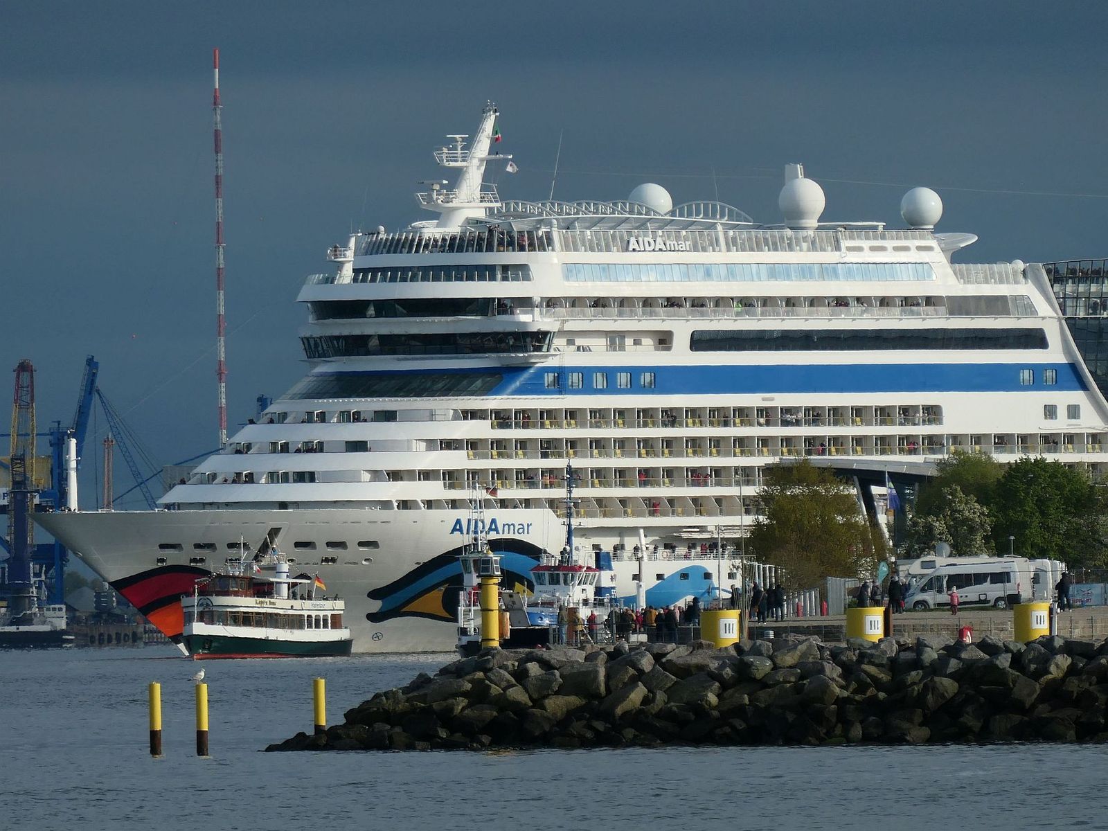 Heute Abend werde ich aber noch einmal nahe sein, denn ich habe ganz fest vor, trotz des angekündigten Regens das Auslaufen von AIDAmar von einer der kleinen Begleitbarkassen aus mitzuerleben.
