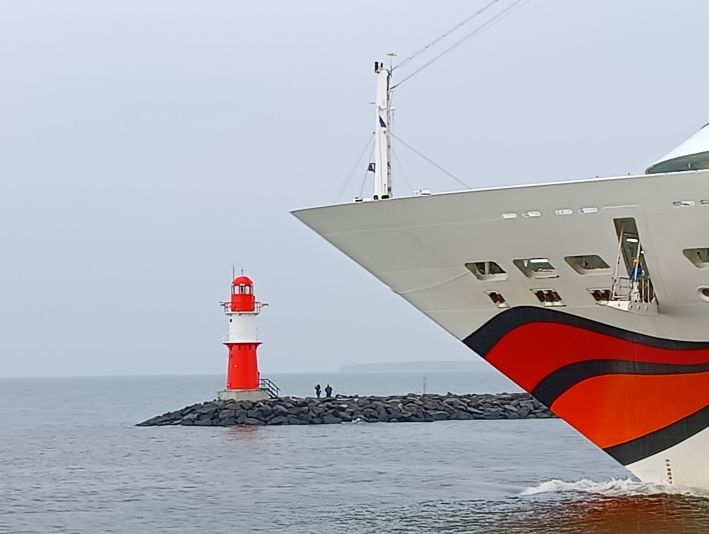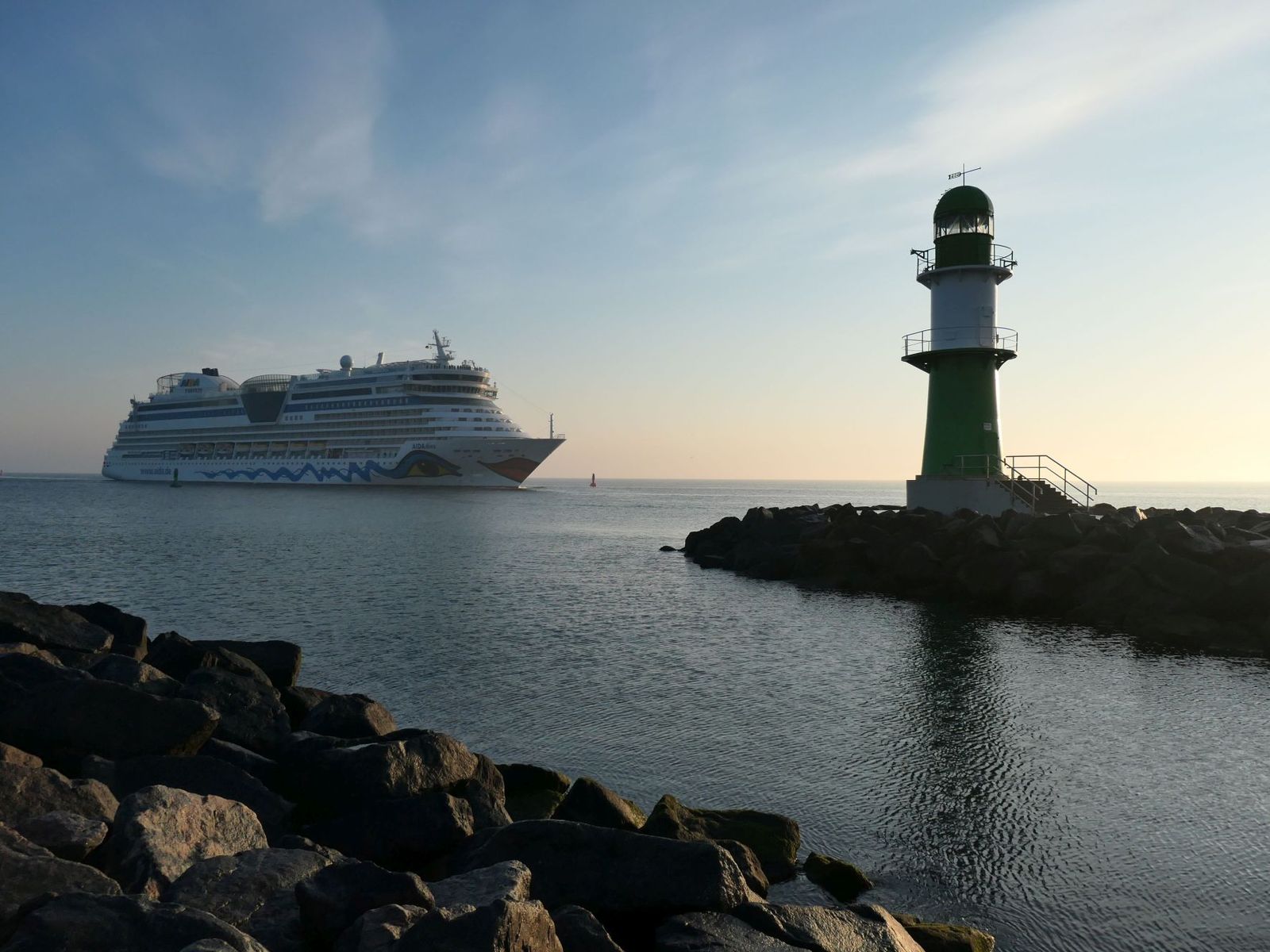 Kürzlich habe ich sie noch nur am heimischen Laptop begrüßen können, heute durfte ich sie live vor Ort in der Abendsonne von Warnemünde verabschieden: AIDAmar.