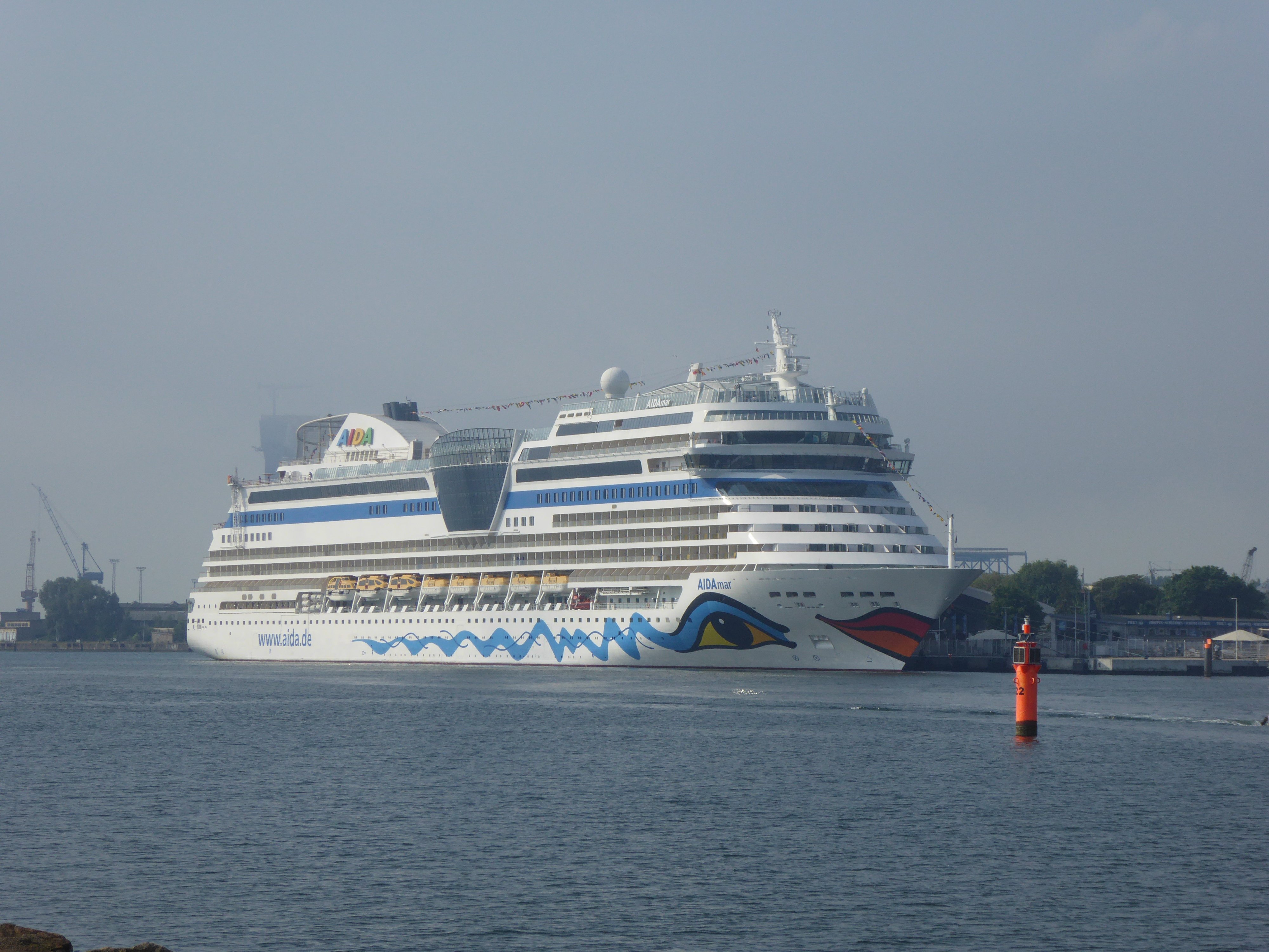 Da es so schön zum Thread-Thema passt, nachfolgend ein paar Fotos des Einlaufens von AIDAmar am 21. Mai 2016, die ich am Morgen meiner Heimreise von der Westmole aus noch gemacht hat.