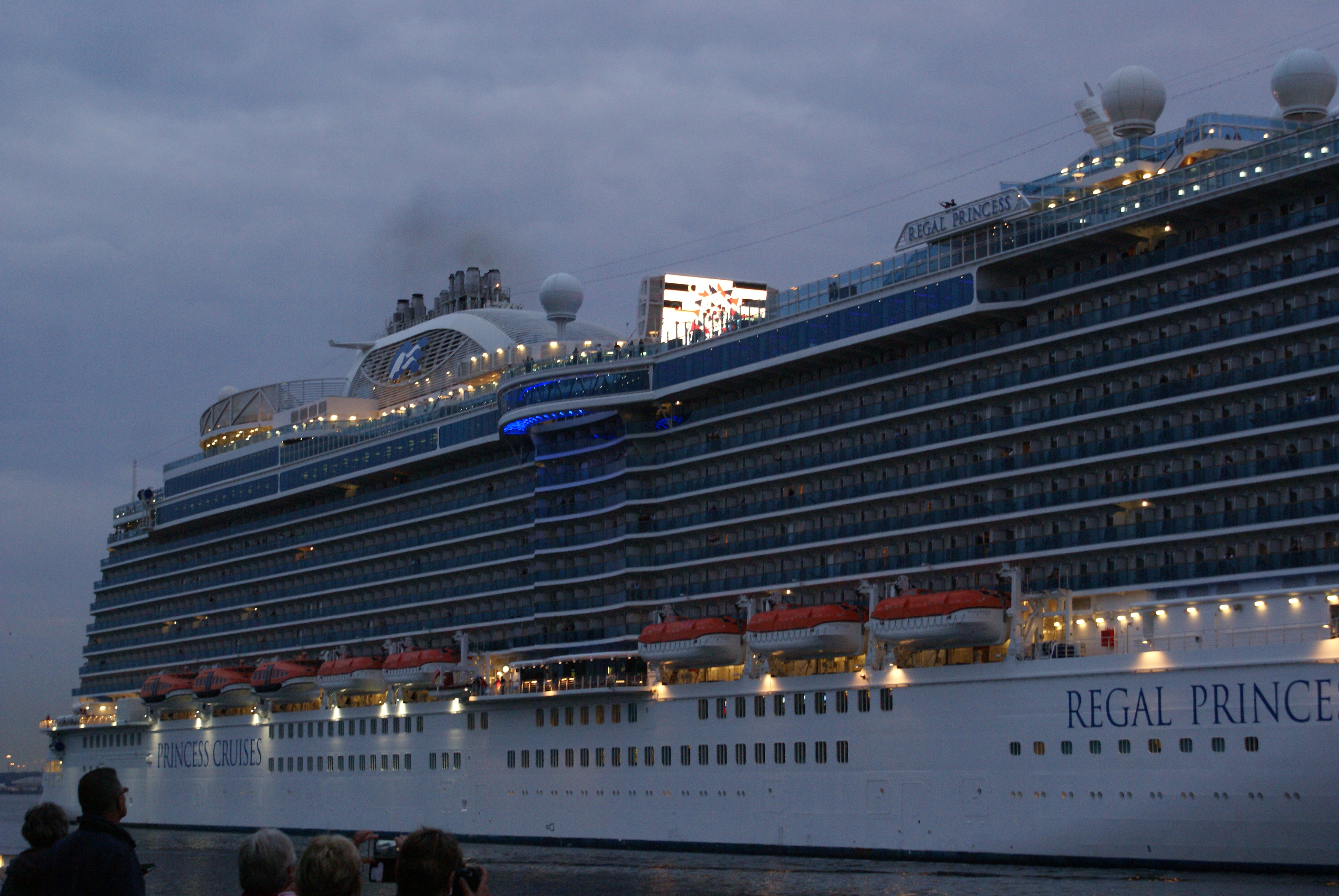 Die Viking Sea verläßt als letztes Kreuzfahrtschiff - mit 30 minütiger Verspätung - das Ostseebad Warnemünde...