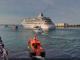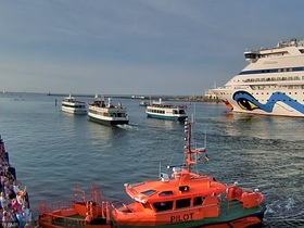 Gerade legt sie wieder ab: https://www.rostock-port.de/livecam/webcam.html.