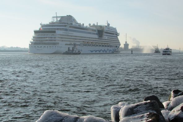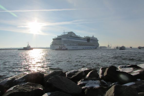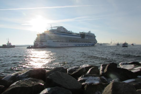 Es war eisig kalt, doch etliche schiffsverrückte Fans, darunter auch ich, harrten auf der Westmole aus, um AIDAstella willkommen zu heißen. Es hat sich gelohnt!