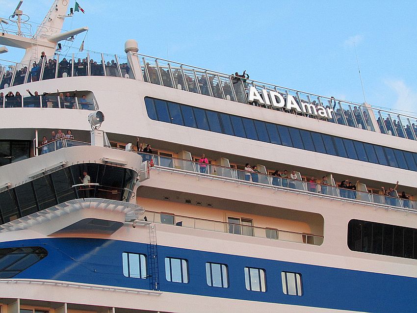Mein kleiner persönlicher Beitrag zu diesem Thema. Auslaufen im Jahr 2011 mit Ehefrau und Enkelkindern. Habt Nachsicht, ich bin kein Aida-Profifilmer: