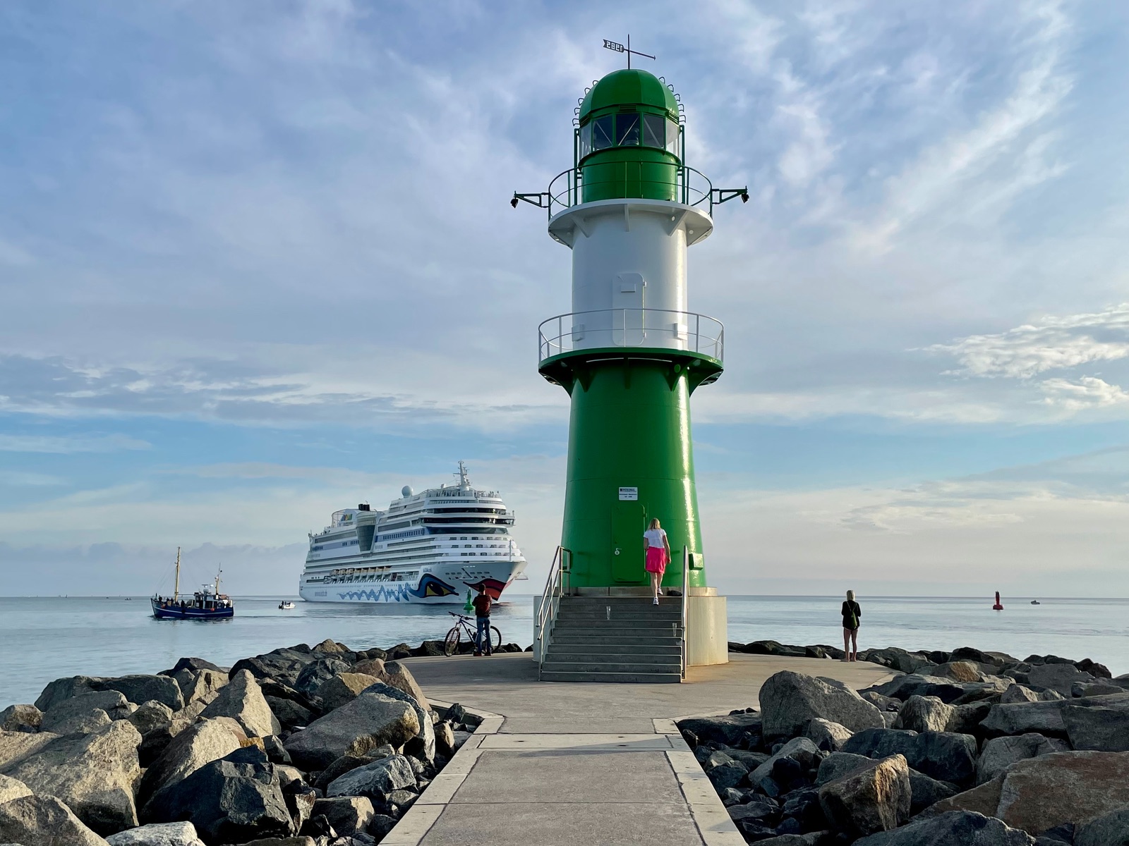 Für uns 200 km weniger und das Auslaufen viel schöner. Werden vorher und danach noch durch Warnemünde bummeln. Bei Start in Kiel darf man ja sicher auch nicht alleine vom Schiff in Warnemünde. Das würde uns als Warnemündefan nichts bringen.