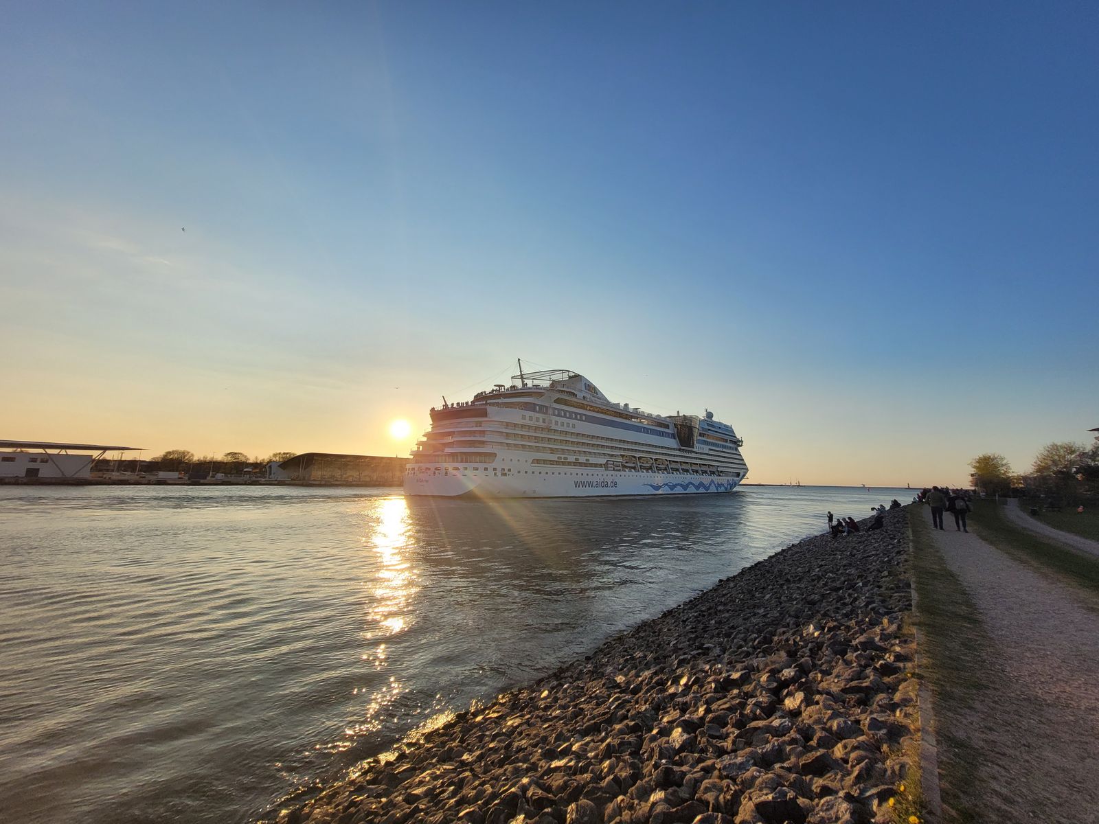 Gerade läuft AIDAdiva bei herrlichster Morgensonne wieder in Warnemünde ein.