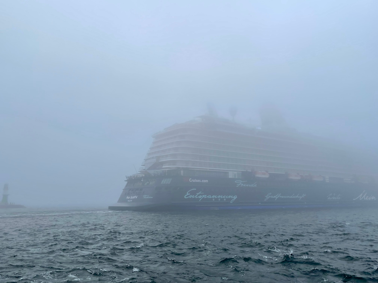 Es soll wohl tatsächlich in dem Moment als die Leinen losgeschmissen worden sind eine Sicht von 3800m gegeben haben. Das deckt sich dann mit der Beschreibung von Apfelfrau, das binnen Sekunden alles wieder zugezogen ist. Allerdings ist diese Nebel Regelung in Warnemünde auch nicht mehr zeitgemäß, da sind die Lotsen und Nautiker schon länger dagegen. In Kiel und am engen Nord Ostsee Kanal gibt es so eine Regel z.b nicht mehr.