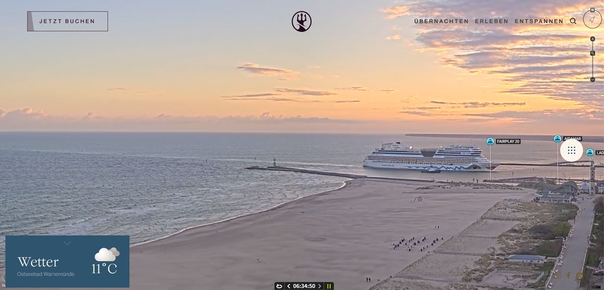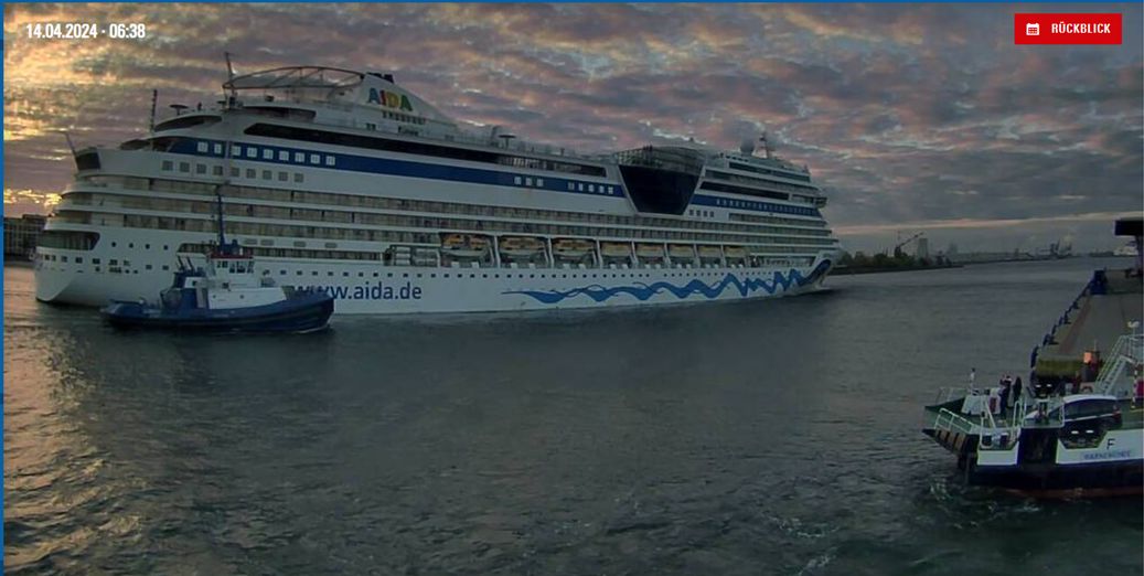 Wenn auch in aller Sonntagsfrühe von der heimischen Couch aus, so habe ich es mir nicht nehmen lassen, AIDAs Erstanlauf im Jahr 2024 am Laptop zu verfolgen - den Webcams "Hotel Neptun" und "Rostock Port" sei Dank.