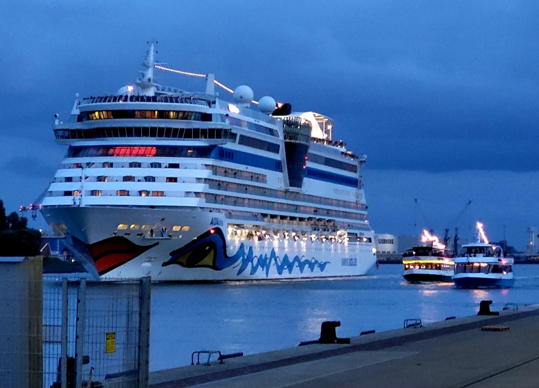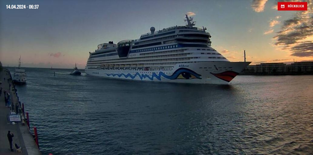 Wenn auch in aller Sonntagsfrühe von der heimischen Couch aus, so habe ich es mir nicht nehmen lassen, AIDAs Erstanlauf im Jahr 2024 am Laptop zu verfolgen - den Webcams "Hotel Neptun" und "Rostock Port" sei Dank.