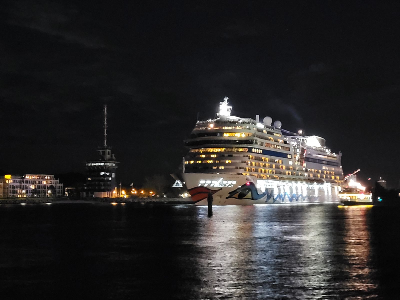 Wenn auch in aller Sonntagsfrühe von der heimischen Couch aus, so habe ich es mir nicht nehmen lassen, AIDAs Erstanlauf im Jahr 2024 am Laptop zu verfolgen - den Webcams "Hotel Neptun" und "Rostock Port" sei Dank.