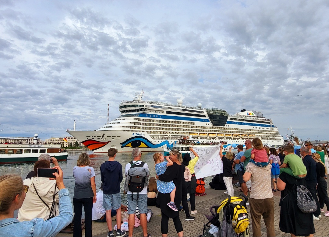 In Warnemünde pilgern die Menschenmassen regelrecht nur wegen des Auslaufens an den Seekanal...