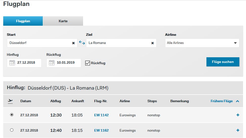 Ich hatte auf der Flugplansseite von EW nicht mal La Romana gefunden... -