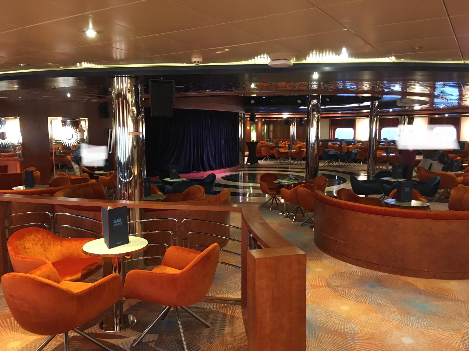 Was gerade ein bisschen blöd ist: auf dem Pooldeck ist es etwas zu frisch, AIDA Bar geschlossen, Mira Bar geschlossen, Art Bar geschlossen, Vino thek geschlossen, nur das Café Mara hat auf. Eine einsame und verlassene Servicekraft muss nun der Massen Herr werden. Das ist schlecht geplant. Warum haben am See Tag nicht mehr Bars auf. Das kennen wir anders und das gefällt mir nicht.