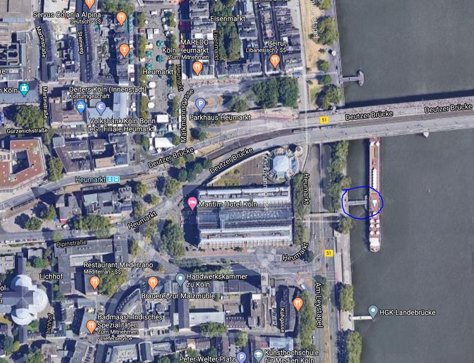 Der Anleger liegt direkt an der Deutzer Brücke. Man kommt von der Altstadt prima dorthin.