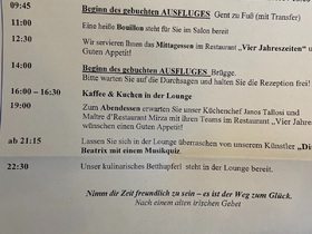 Hallo Gabi, das war bei uns sehr gut organisiert. Ich habe Dir mal die Kopie vom Tagesprogramm eingestellt. Danach ging der Shuttle in die Stadt über den ganzen Tag und war kostenlos. Ob das immer noch so ist, weiß ich nicht.