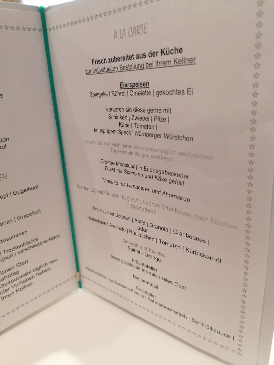 Auch das Essen top. Karten zum bestellen liegen aus (Inkl.) wovon wir auch Gebrauch machen und alles ist super.