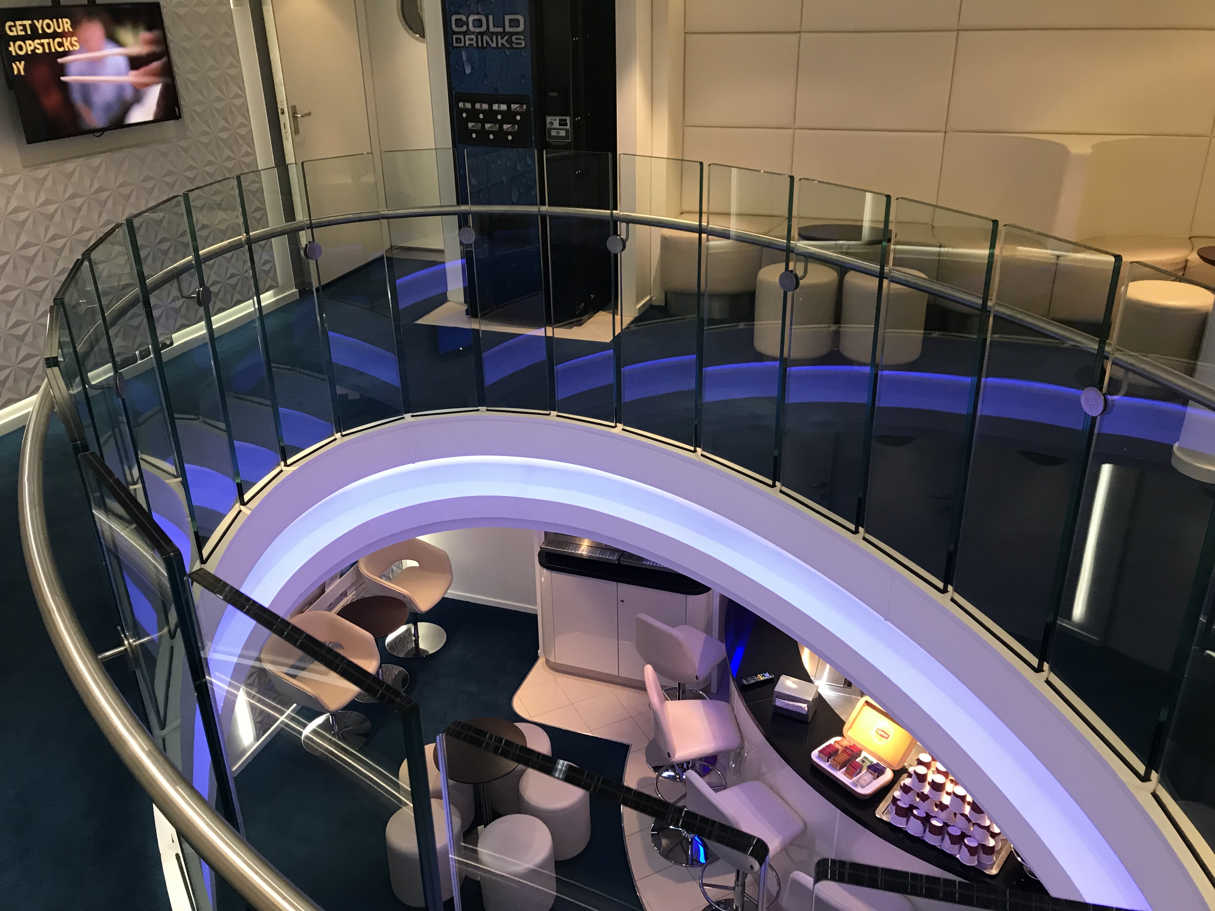 Mit Einführung der Epic wurde ja ein Concept für Alleinreisende eingeführt und der dann folgenden Schiffe ( bis auf Joy ). Es gibt dabei kleinere Kabinen die nur für Alleinreisende buchbar sind und in einem eigenen Komplex liegen. Den Kabinen steht zusätzlich eine eigene Lounge über zwei Ebenen zur Verfügung. Im Dayli steht jeden Tag ein Trefffpunkt für Alleinreisende drin für ein gemeinsamens Abendessen. Erster Abend war in einer Bar und an den folgenden Tagen in der Lounge. Die Bar in der Lounge wird nur zu dieser Zeit bedient. Ansonsten steht Tee, kaffee, Wasser, Orangen Saft sowie Äpfel und was Süßes jederzeit zur Verfügung. Ein Mitarbeiter ist dabei zuständig für den Komplex, siehe Bild mit Vorschlägen und es steht eine Tafel für Nachrichten noch zur Verfügung.