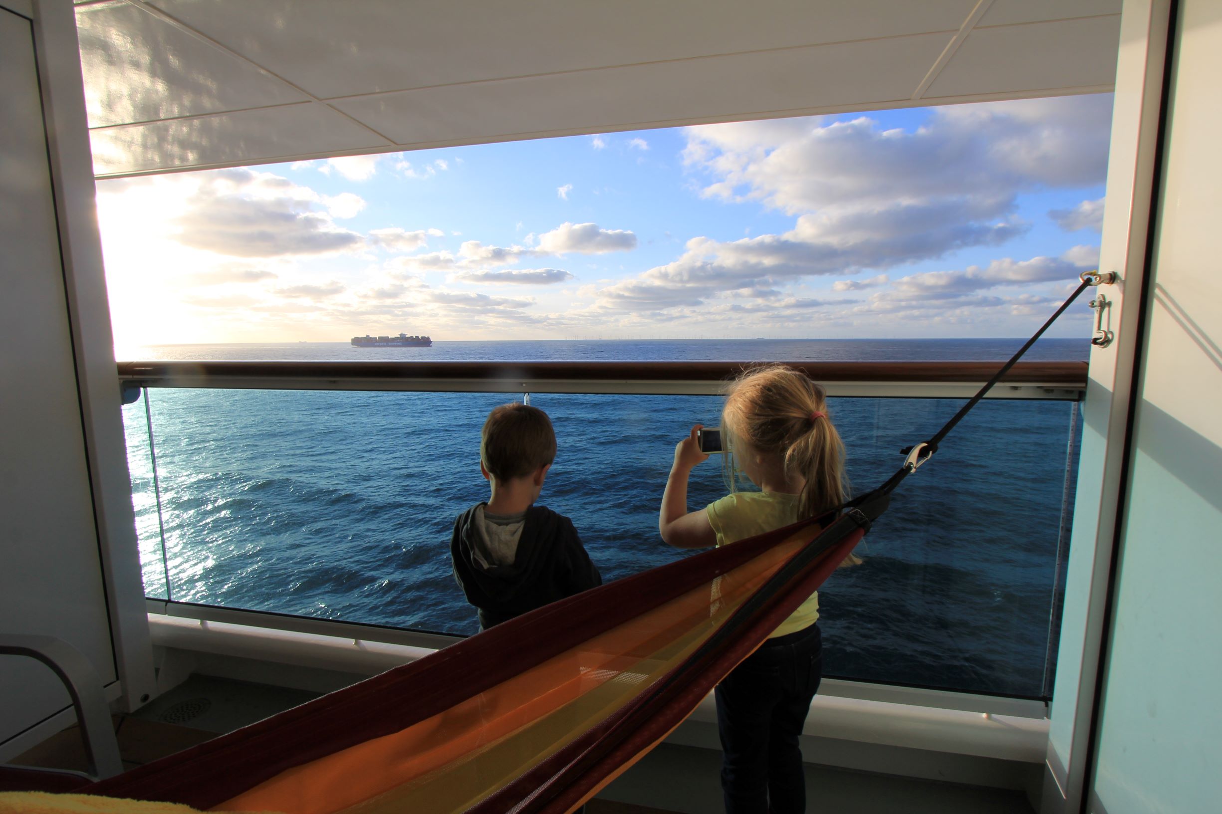 Am gespanntesten war ich auf den Balkon, da man (siehe obige Beiträge) immer wieder hörte, dass auf Deck 12 im hinteren Bereich kaum Sonne auf dem Balkon sei.