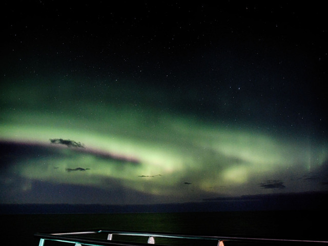Ich glaube, dass das Schiff relativ egal ist, eventuell liegt die aura wegen der Stabilisatoren etwas ruhiger im Wasser als die cara - da bin ich mir nicht sicher. Die aura fährt von der anderen Seite nach Tromso ein, hat aber den gleichen Liegeplatz.