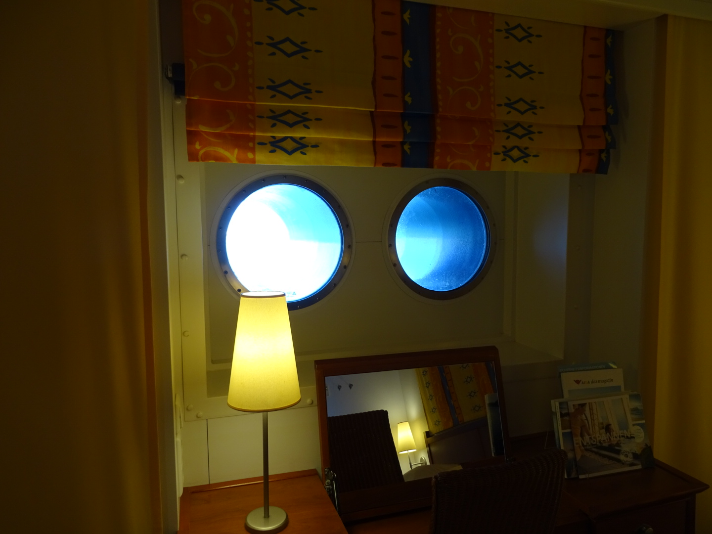 Ein Blick auf den Grundriss sagt leider nicht alles. Ich hatte eine Kabine auf Deck vier vorne mit Bullaugen. Klar, das mit den Bullaugen steht im Grundriss. Dass das aber keine normalen Bullaugen sind sondern zwei kleinere, sehr tiefliegende Bullaugen, erkennt man als „Anfänger“ nicht. War übrigens eine Zuteilung im Vario, Meerblick gebucht. Dieses Mal ähnlich, Deck 5 ganz vorne, dieses Mal ein tiefliegendes Fenster. Einen Wecker werde ich wieder nicht brauchen - da vorne wird beim vorm Anlegen von allein wach ![]()