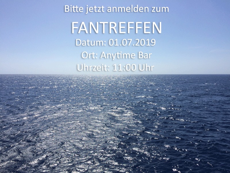 ) werden Anmeldungen gesammelt für ein Treffen. Wer sich hier aus dem Forum anschließen möchte, darf mir gerne eine persönliche Nachricht schreiben, ich leite die Namen und Kabinennummern dann gerne weiter. -