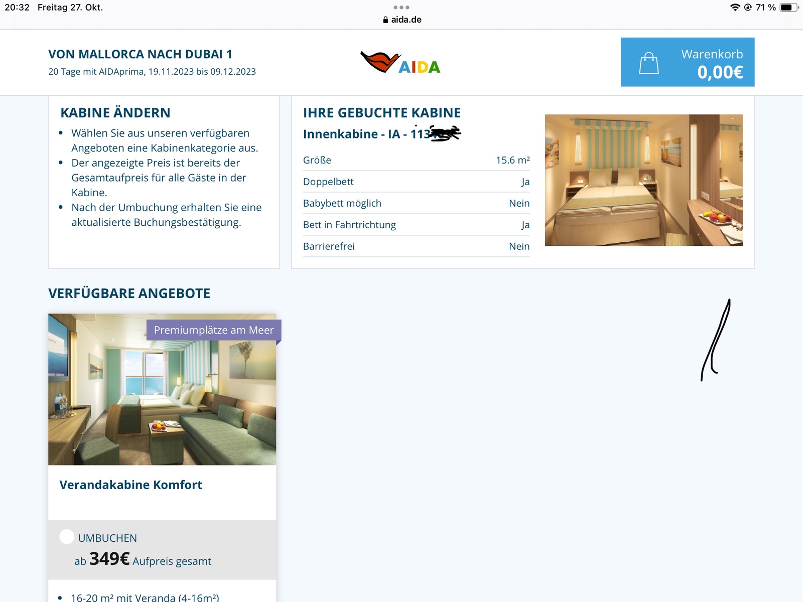 habe heute morgen eine Mail mit Angebot zur Höheren Kabine bekommen