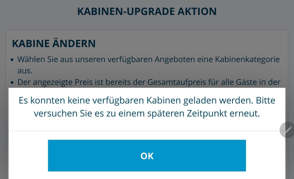 Da ich Balkon Vario gebucht habe und die Kabine alleine belege, sollte ich mich vielleicht gar nicht wundern, dass da nix für ne Suite kommt.
