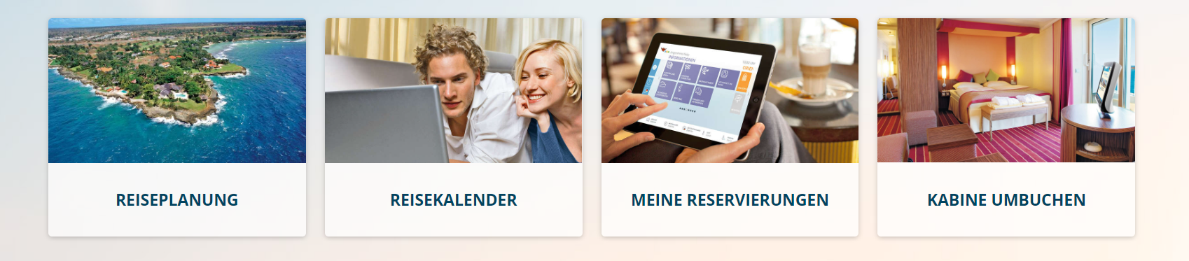 MyAIDA - neuer Reiseplaner. Statt der drei üblichen Kacheln sind es dann vier.
