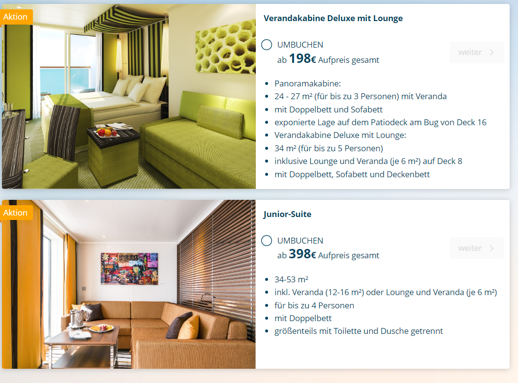 Erschließen tut es mir Sicht nicht, warum man ein upsell an Bord so teuer machen , also 30 Euro p.p. Und Nacht aufwärts. Ich meine, geputzt werden muss die Kabine doch eh, egal welche und wenn es die Möglichkeit gibt, selbst noch 150 Euro mehr rauszuholen, dann würde ich das doch machen… wenn Vll. 50 Personen dann an Bord umbuchen, sind es noch immer 7500 Euro mehr, bei gleicher Arbeitsleistung für das Personal ?😏 aber Vll. Denk ich auch zu einfach …