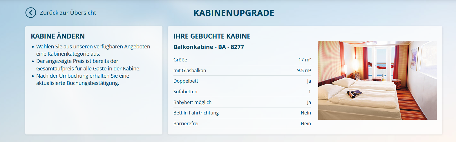 Ok, da ist eine Panoramabalkonkabine buchbar, dann passt das, die 12207 dürfte dein Upgradeangebot sein.
