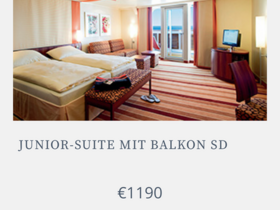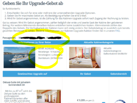 Mein Mann hätte allerdings gerne eine Verandakabine und im Rahmen des Bieterverfahrens wäre es mir jetzt möglich, auf eine Verandakabine Komfort zu buchen, Startgebot 60€ pro Gast.