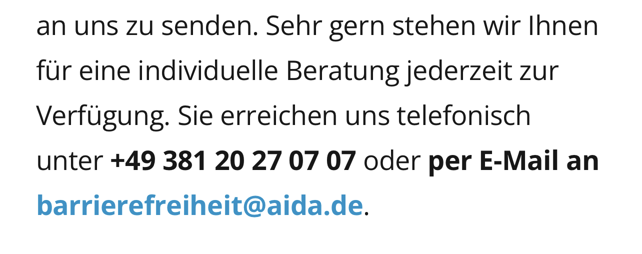 Ich meine mich zu erinnern, dass es bei Aida eine Mail-Adresse für Belange Gehandicapter gibt :/
