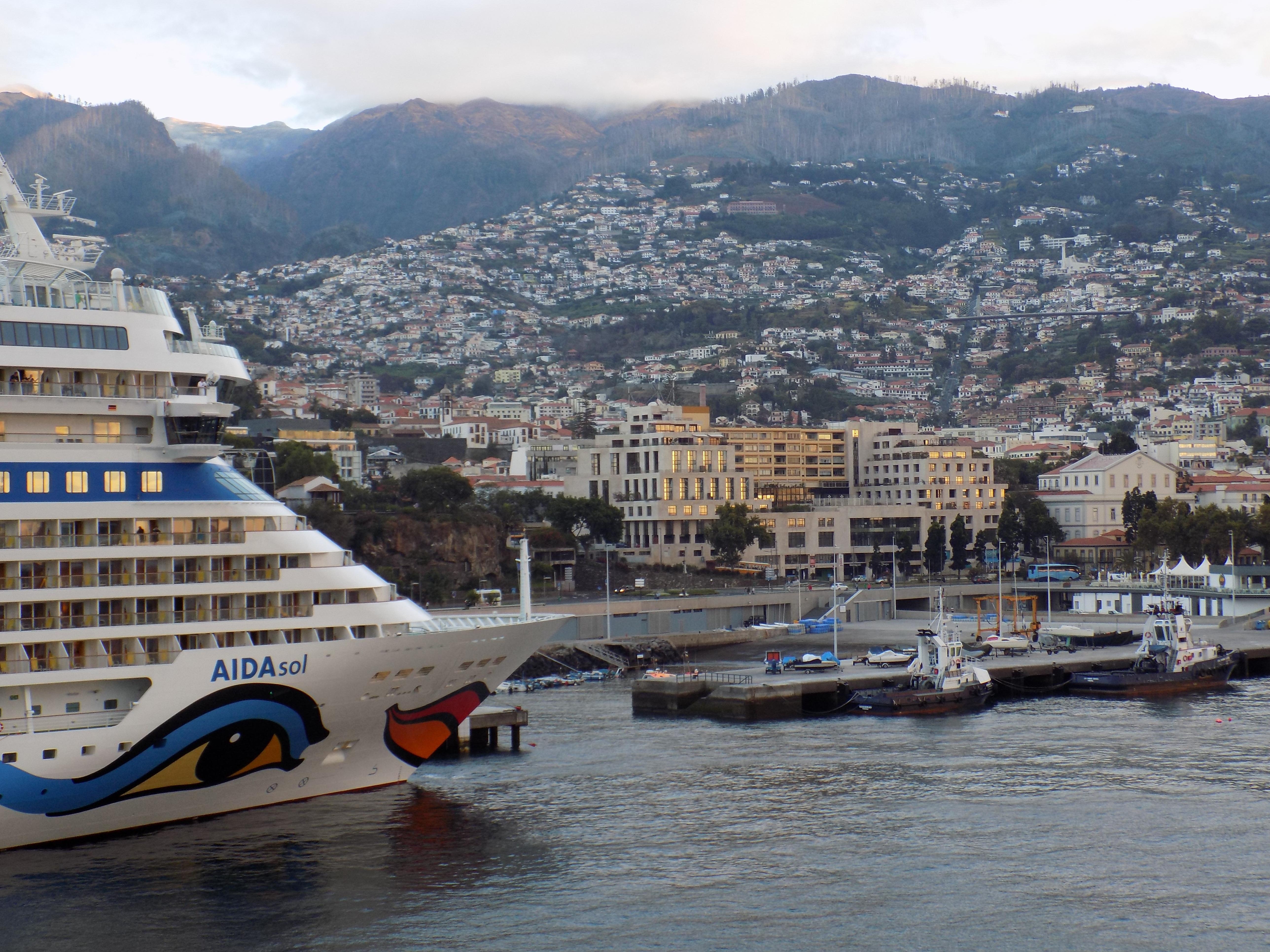 Heute sind wir früh auf gestanden. Draußen war es schon hell, also nichts wie raus auf den Balkon und einen Blick auf Funchal werfen. Direkt neben uns hatte schon die AIDAsol festgemacht. Wir hatten einen wunderschönen Blick auf das Schiff mit Funchal im Hintergrund.