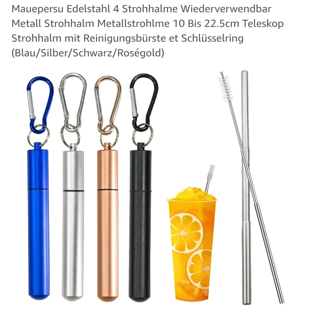 Edelstahl-Strohhalme (Reise-Strohhalme) gekauft.