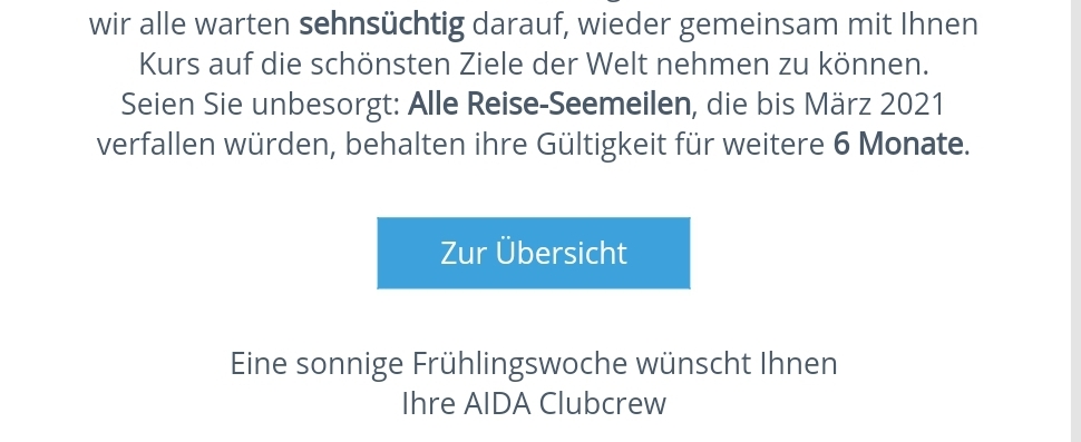 Seien Sie unbesorgt: Alle Reise-Seemeilen, die bis März 2021 verfallen würden, behalten ihre Gültigkeit für weitere 6 Monate.