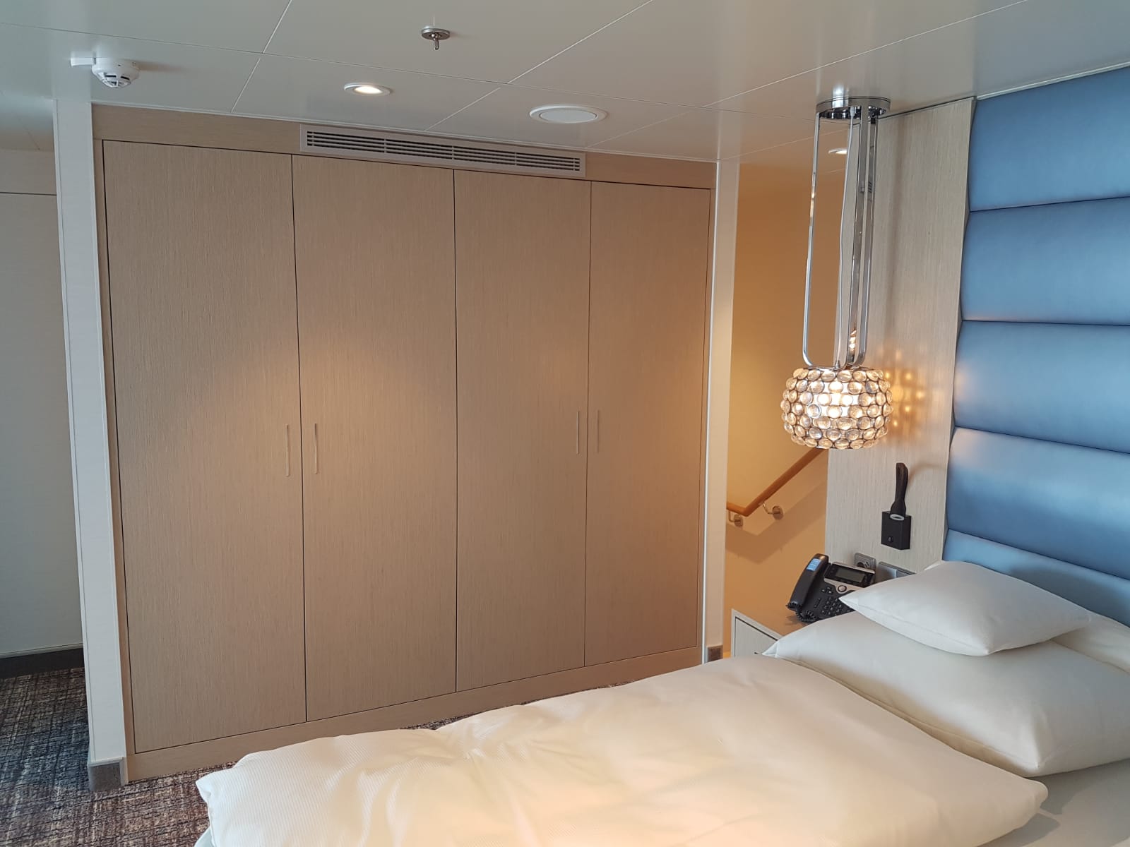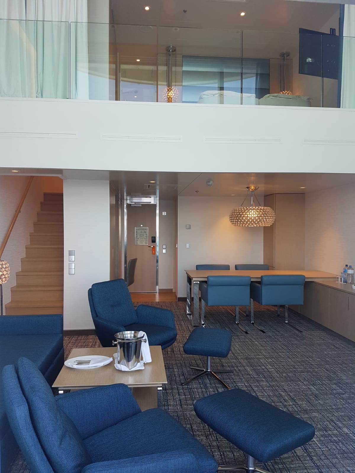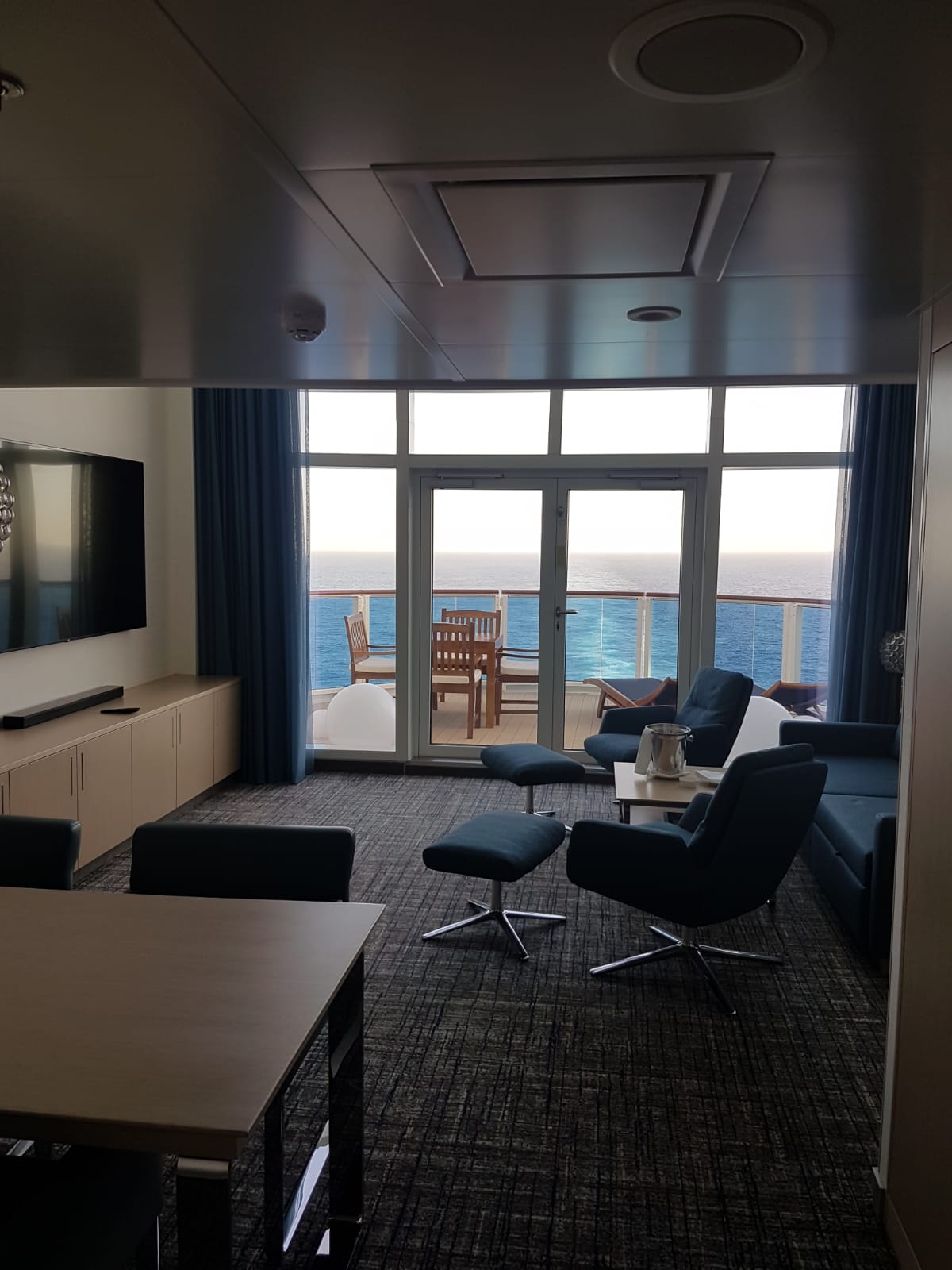 Da habt ihr euch aber etwas nettes ausgesucht. Ich denke der Blick aus dem Bett auf das Schraubenwasser am Heck ist durch die riesige Fensterfront grandios und Platz gibt es in der Suite tatsächlich mehr als genug.